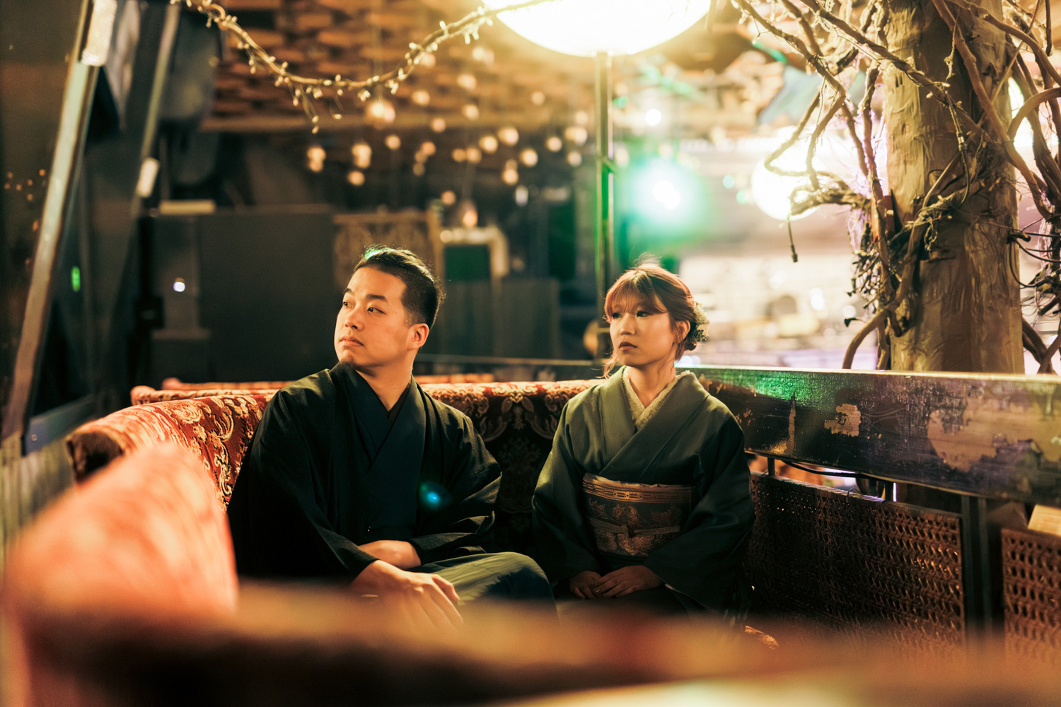 Mikan:今日は、味園ユニバースのレトロな雰囲気に合うんじゃないかと思って、衣装を和服にしました。和服は以前にも着たことはありますが、ライブで着るのは今回が初めてです。アースも、今日が人生初の和服 ライブ ですね。