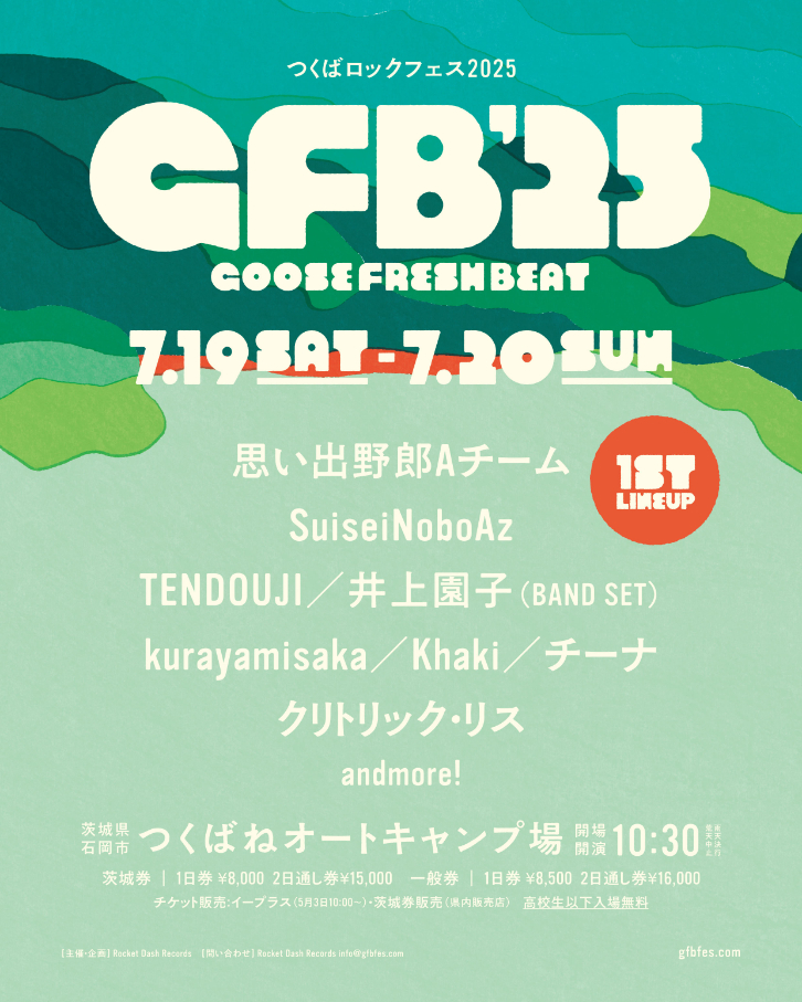 7月19日(土)・20日(日)に茨城・つくばねオートキャンプ場で開催される『GFB’25(つくばロックフェス)』から、第一弾出演アーティストのラインナップが発表された。