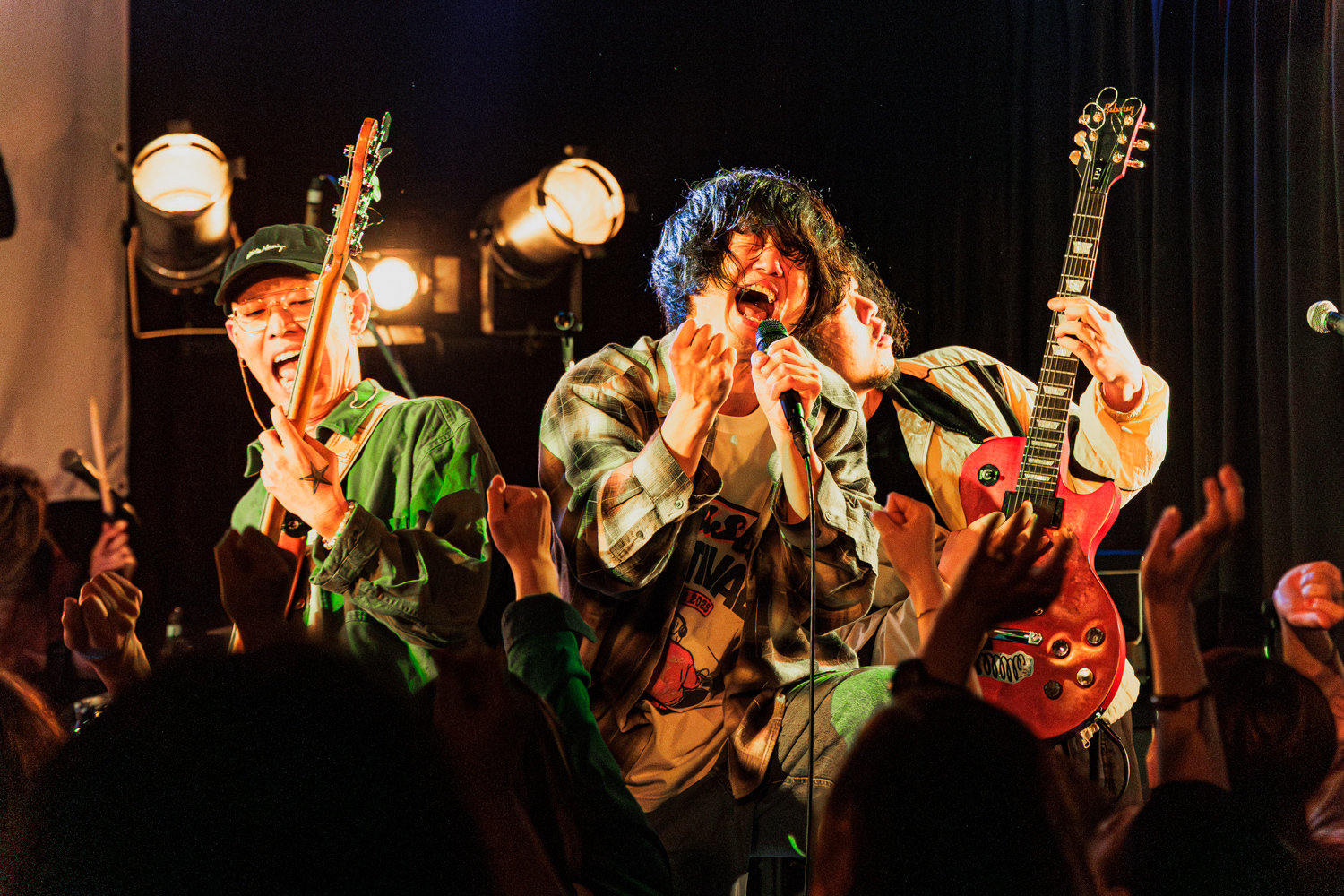 中でも、付き合って8ヶ月&同棲1ヶ月を迎えるカップル(彼氏は二級建築士に合格)に吉田(Gt.Vo)は「どちらからなんていう言葉で告白されたんですか?」とぐいぐい質問。「「おめでと~!」ではなく「ごちそうさまで~す!」 にしましょう」と提案し、会場を湧かせていた。