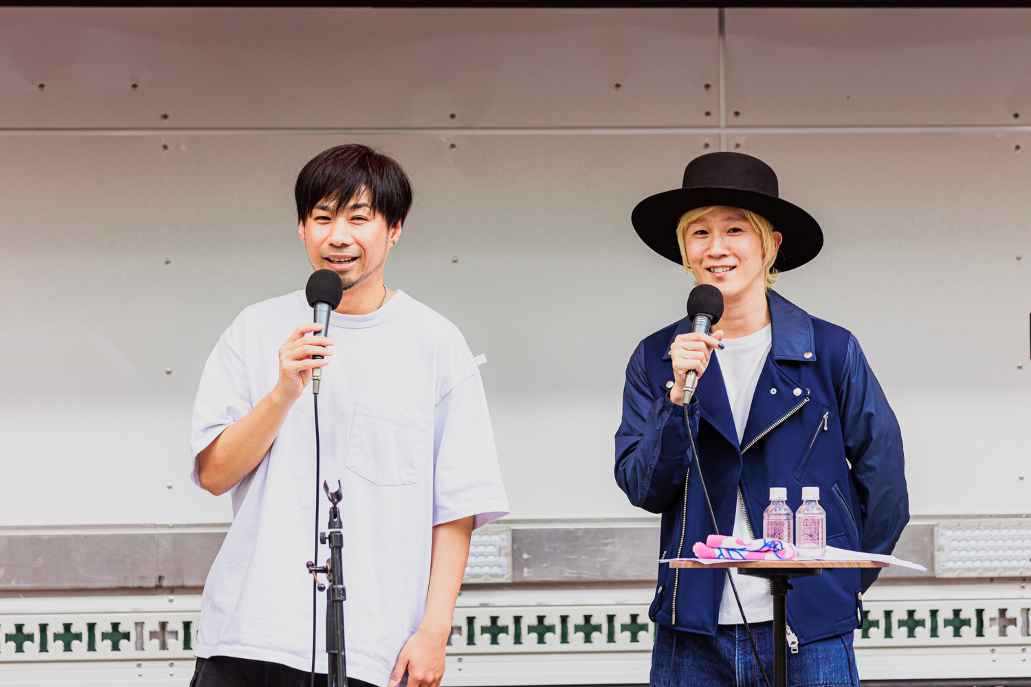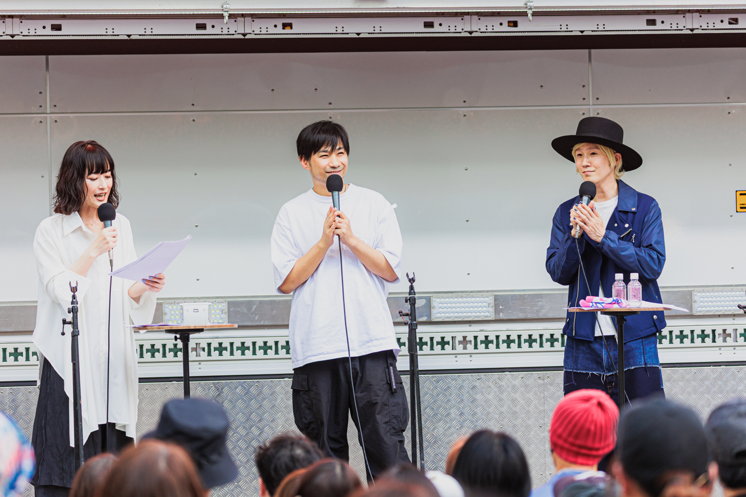 15時30分、生田神社の駐車場エリアでは、サウンドクルー(DJ)藤原岬がナビゲートする『Kiss Music Presenter』の公開インタビューに、この後VARIT.での出演を控える吉田山田がゲストで登場。番組出演は2023年5月ぶり、藤原に会うのは実に2014年以来11年ぶり、さらに『アコフェス』出演は2018年以来7年ぶりということで、「おかえりなさい!」と大勢のギャラリーに歓迎される。「岬の「おめでと~!」のコーナー with 吉田山田」では、この日の来場者が寄せた「お祝いしてほしいこと」を皆でお祝い。