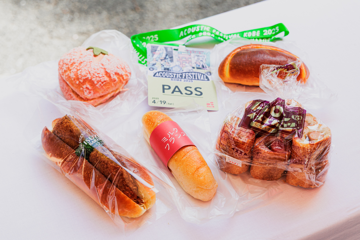 SPICE編集部も、1946年創業のパン屋「イスズベーカリー 生田ロード店」でお昼ご飯を購入。人気の「トレロン」や「元町コロッケドッグ」、新商品の「苺ホイップメロンパン」、神戸出身のアーティスト・tofubeatsおすすめの「ミルクフランス」などをいただいた。イスズベーカリーの特典はなんとお会計から20%オフ! 大盤振る舞いのサービスに、パスを首からかけた人たちの行列ができていた。
