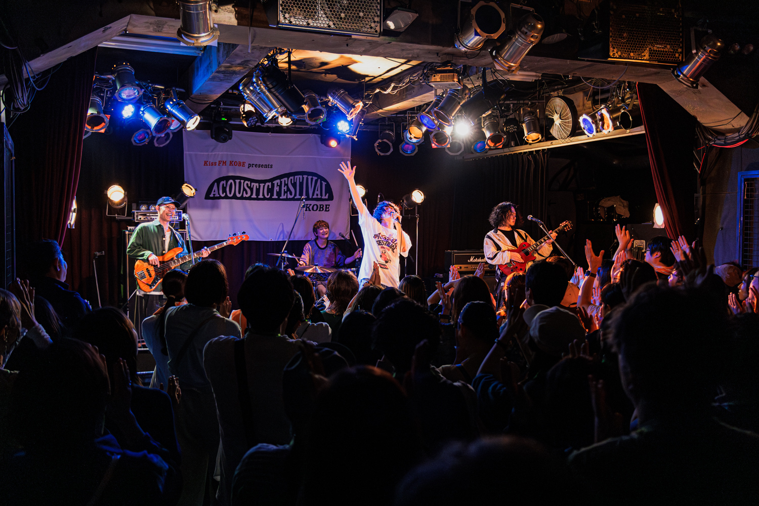 2025年4月19日(土)、Kiss FM KOBE主催『アコースティックフェスティバル』が神戸三宮・元町エリア一帯で行われた。VARIT.、東亜ホール、ザ ロイヤルパーク キャンバス 神戸三宮「CANVASラウンジ」、神戸チキンジョージ、クラブ月世界、live music club PADOMA、KOBE BLUEPORT、MUSIC ZOO KOBE 太陽と虎、生田神社の計9会場で、42組のアーティストがライブを繰り広げた。音楽はもちろん、神戸の街並みやフードも存分に楽しめる本イベント。天候にも恵まれた今年の『アコフェス』の模様を、SPICE編集部がピックアップしたアーティストのライブレポートとともにお届けする。