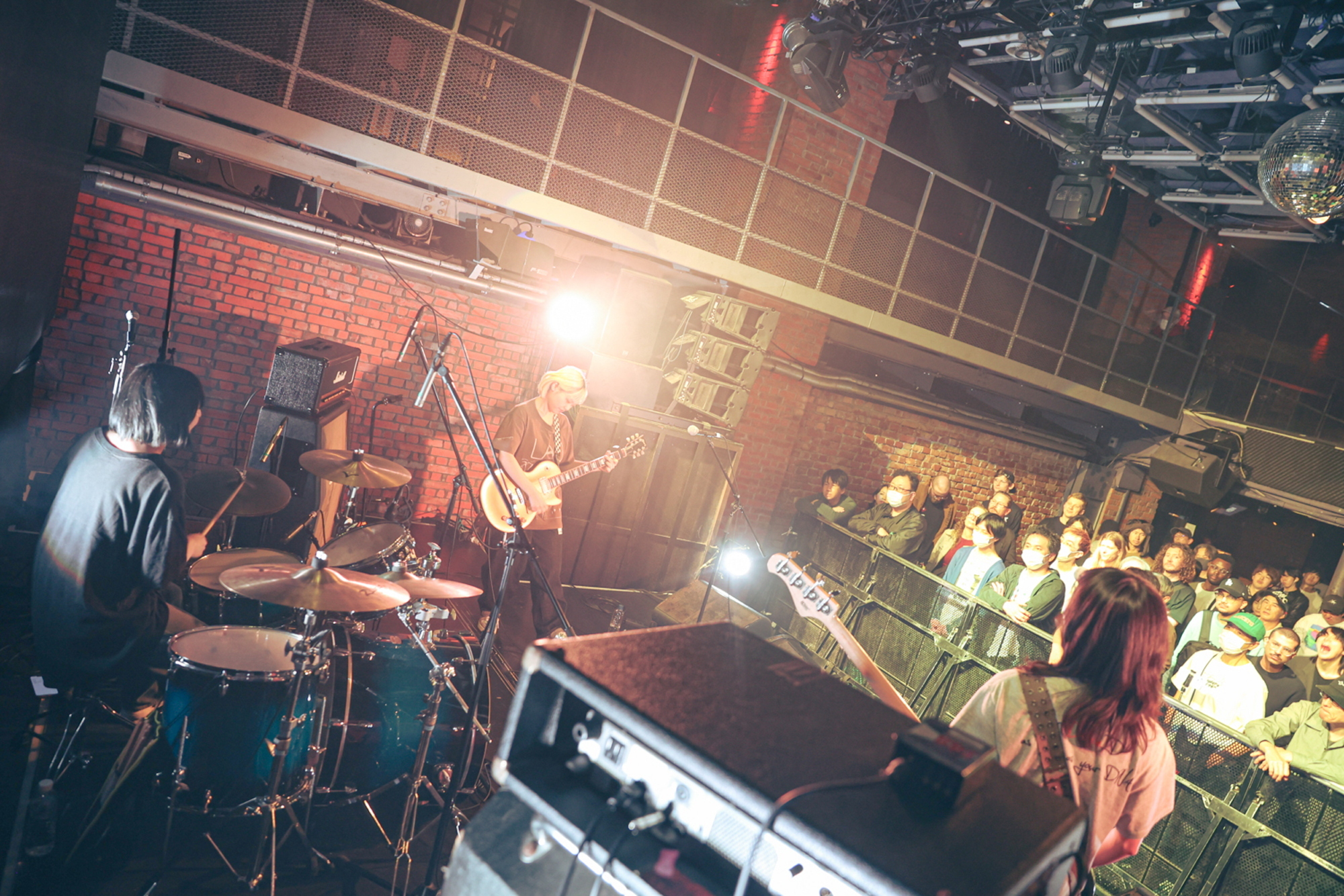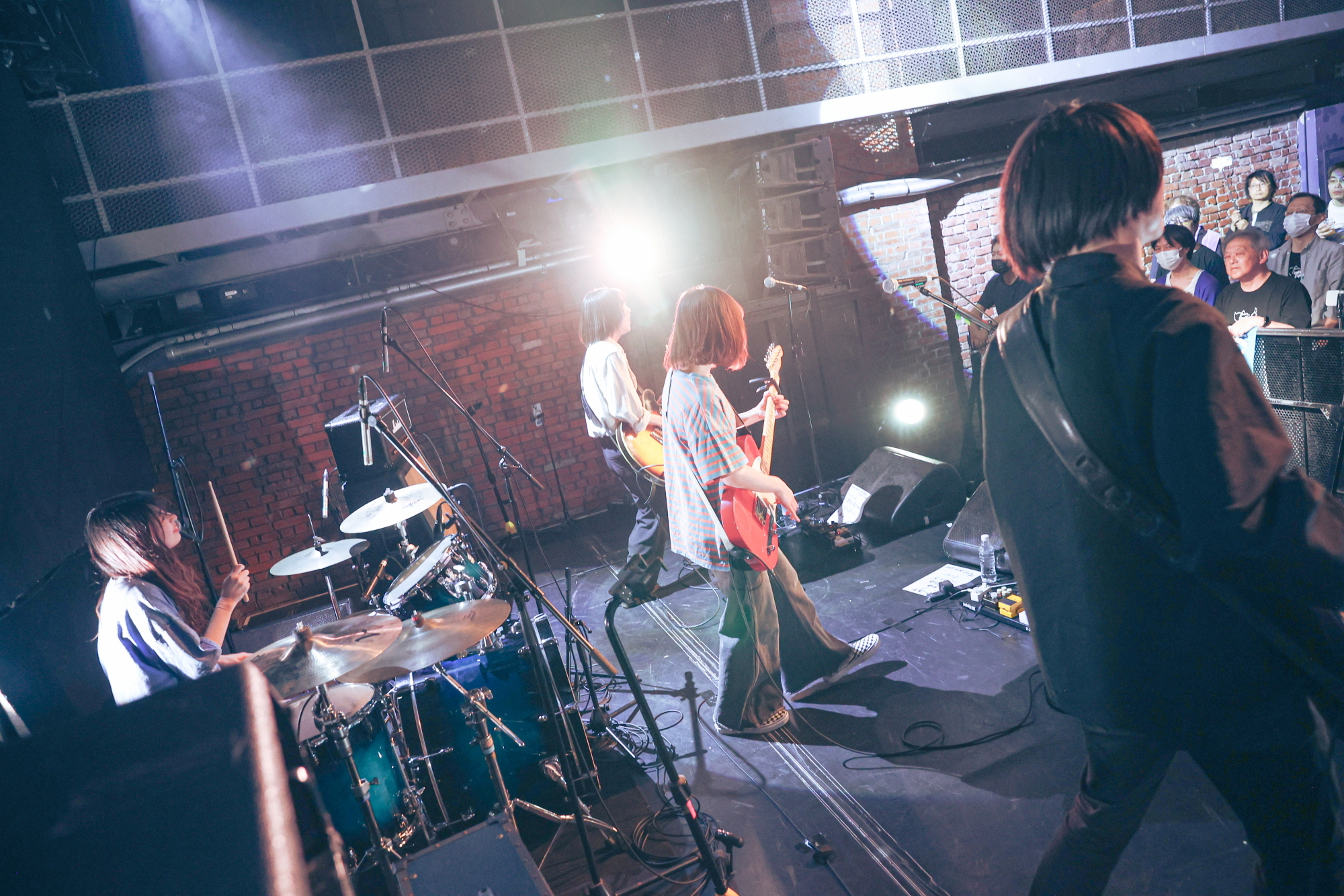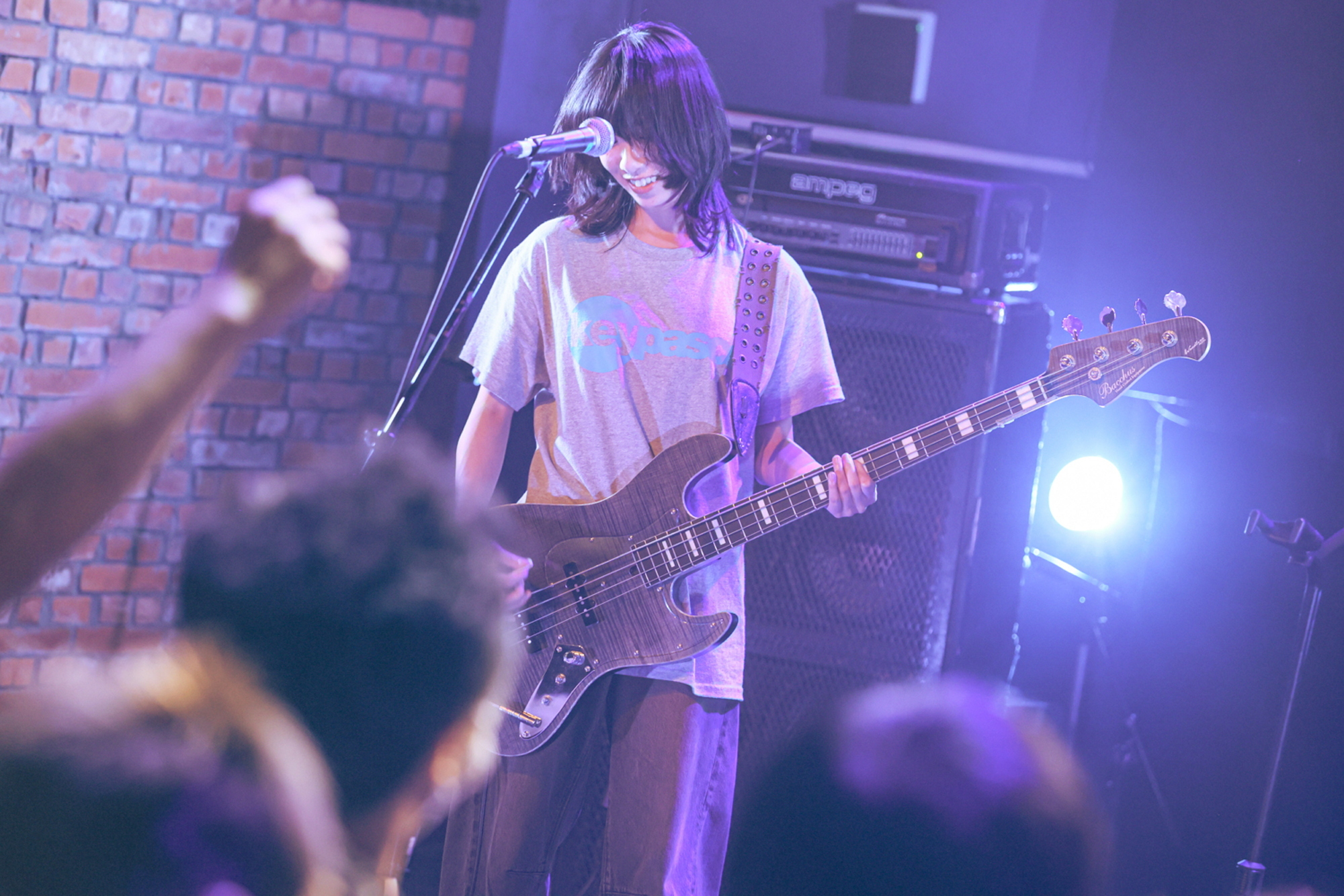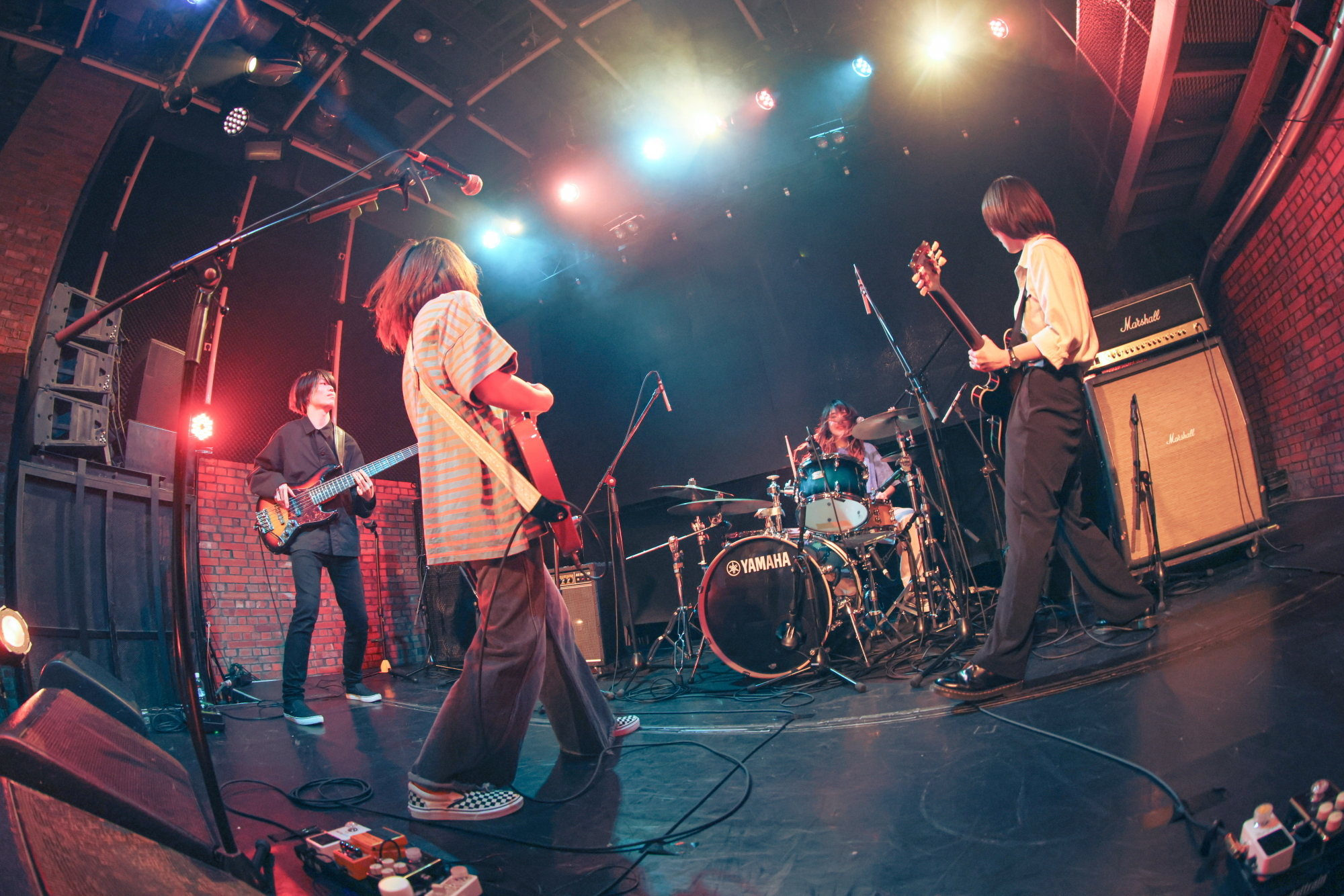 この春から大学生になったというゆうきの、新生活の不安と期待を赤裸々に語る言葉はとても親密。ラスト曲「飲み込む氷菓」を始め、青春期の恋と生活と希望と悩みを丸ごと吐き出す歌詞は、同世代にきっと刺さるだろう。ギターの一弦が切れても構わずかきむしり、顔をゆがめて歌うゆうきの、かっこつけないかっこよさ。溌剌としたピュアさを糧に、どこまでも伸びていきそうなバンドだ。