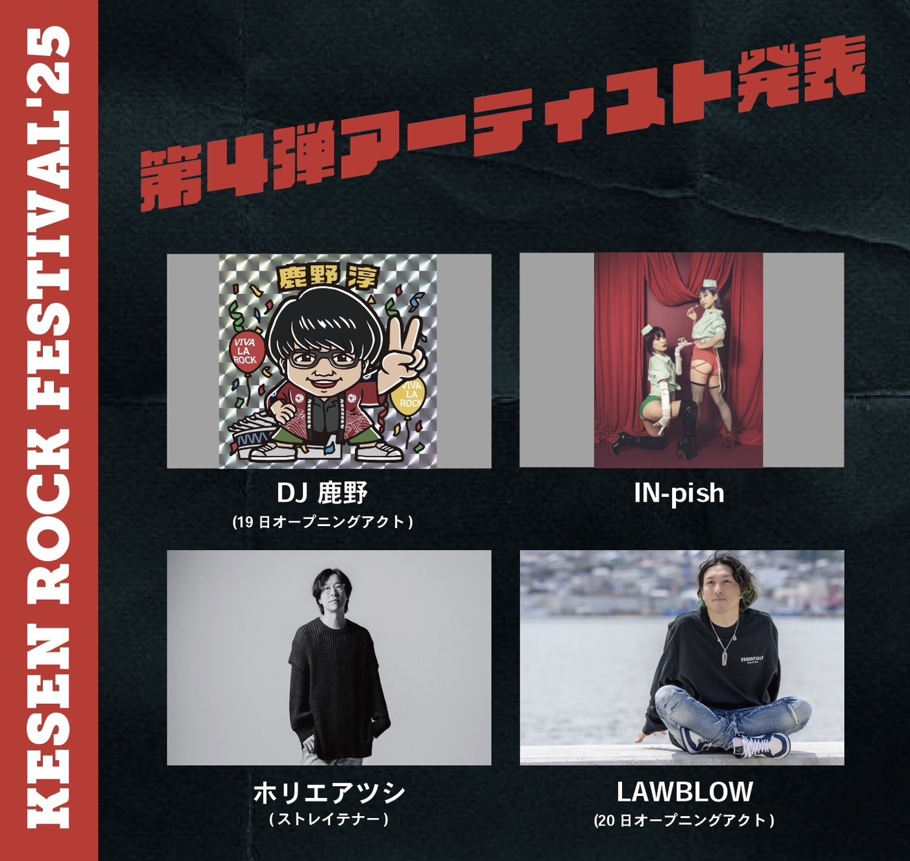 2025年7月19日(土)・20日(日)に、岩手県大船渡市 夢海公園で開催される『KESEN ROCK FESTIVAL’25』の第4弾出演者&日割りが発表された。