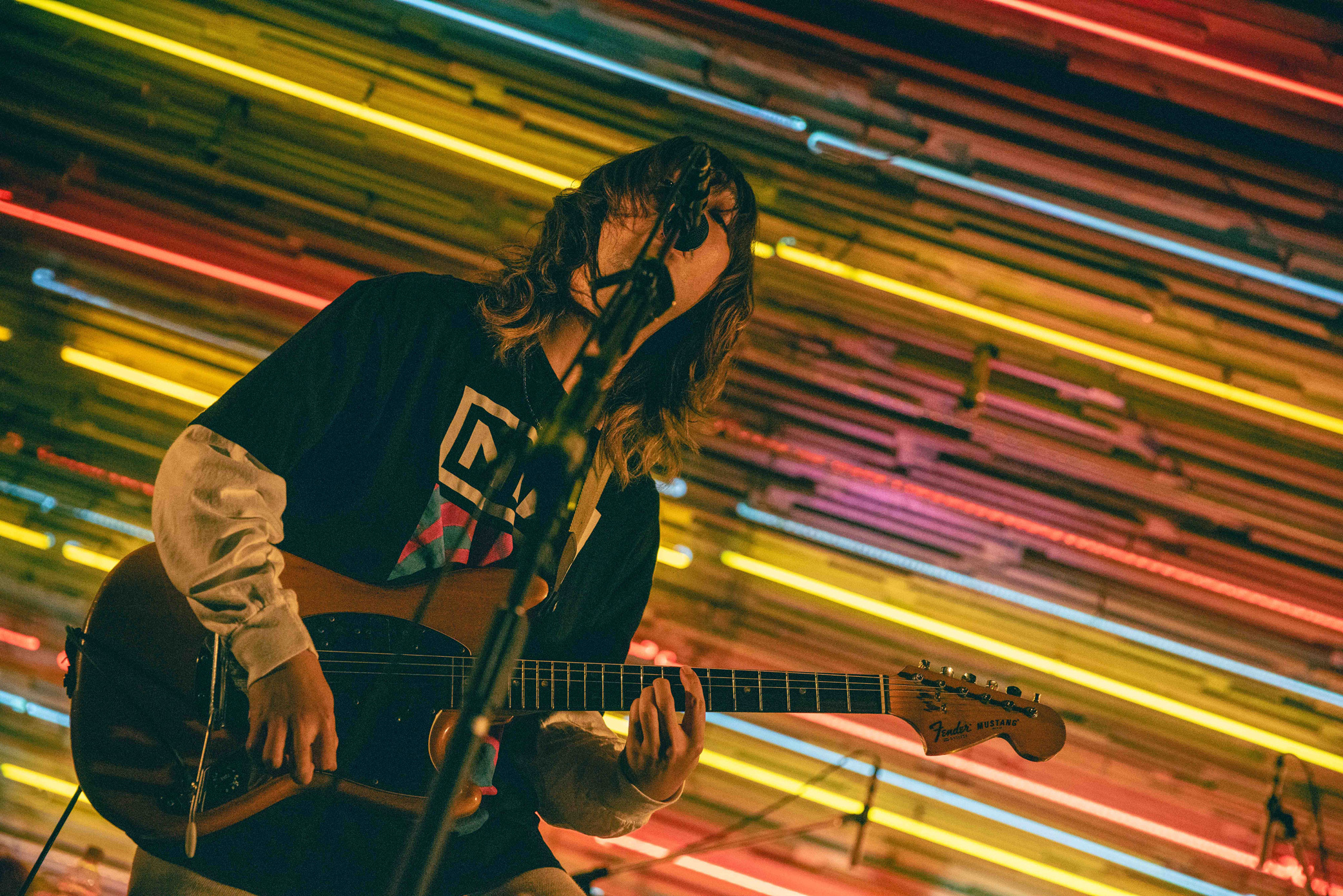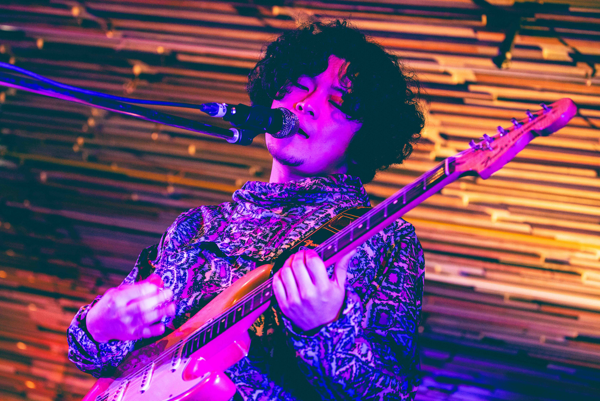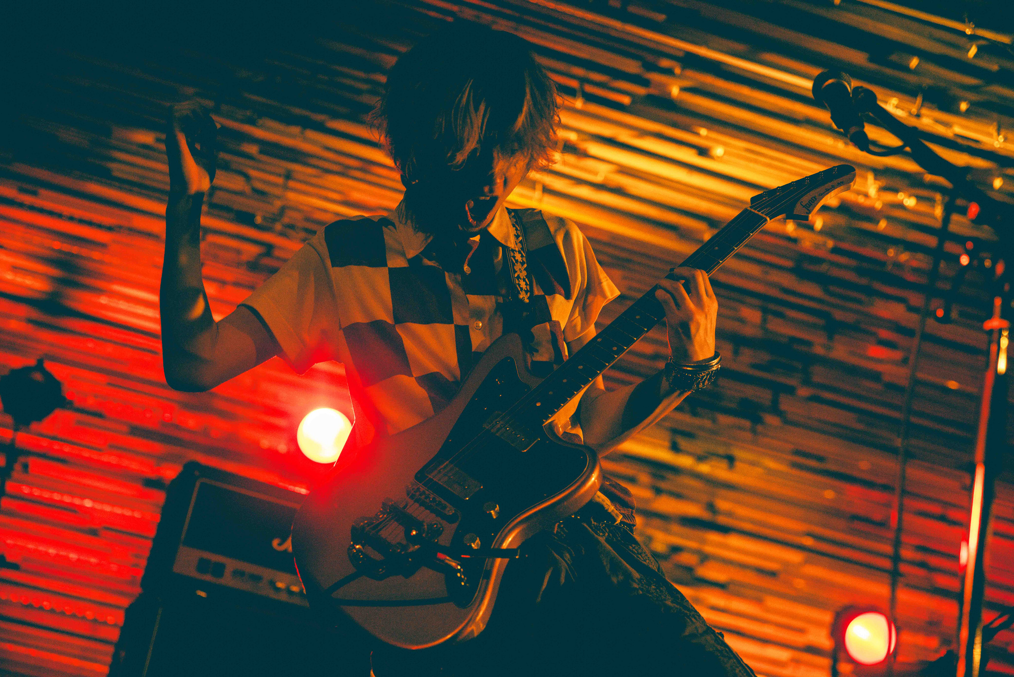 四番風呂はDYGL。凄い歓声が起きる。今年2月にリリースされた1曲目「Just Another Day」から心と体が踊りまくる。格好良い……、文章を書く人間でありながら、情けないが、この言葉しか出てこない。初めてDYGLのロックンロールを聴いてから、早10年は経つが、初期衝動が宿りまくっている。観客フロアにはビール片手に踊りまくっている人々が一瞬で多発していた。音が唸りまくっている。秋山信樹(Vo.Gt)が「お願いします!」と音同様に躍動感ある声で放つ。続いても変わらず想うのは、ただただ格好良いということ。凄みがあるし最早貫禄すらある。凄い勢いで大爆発していく。音が、歌が飛び跳ねまくっている。もしもグルーヴィーという言葉を使いたいのであれば、今この時しか無いというほどにグルーヴィー。