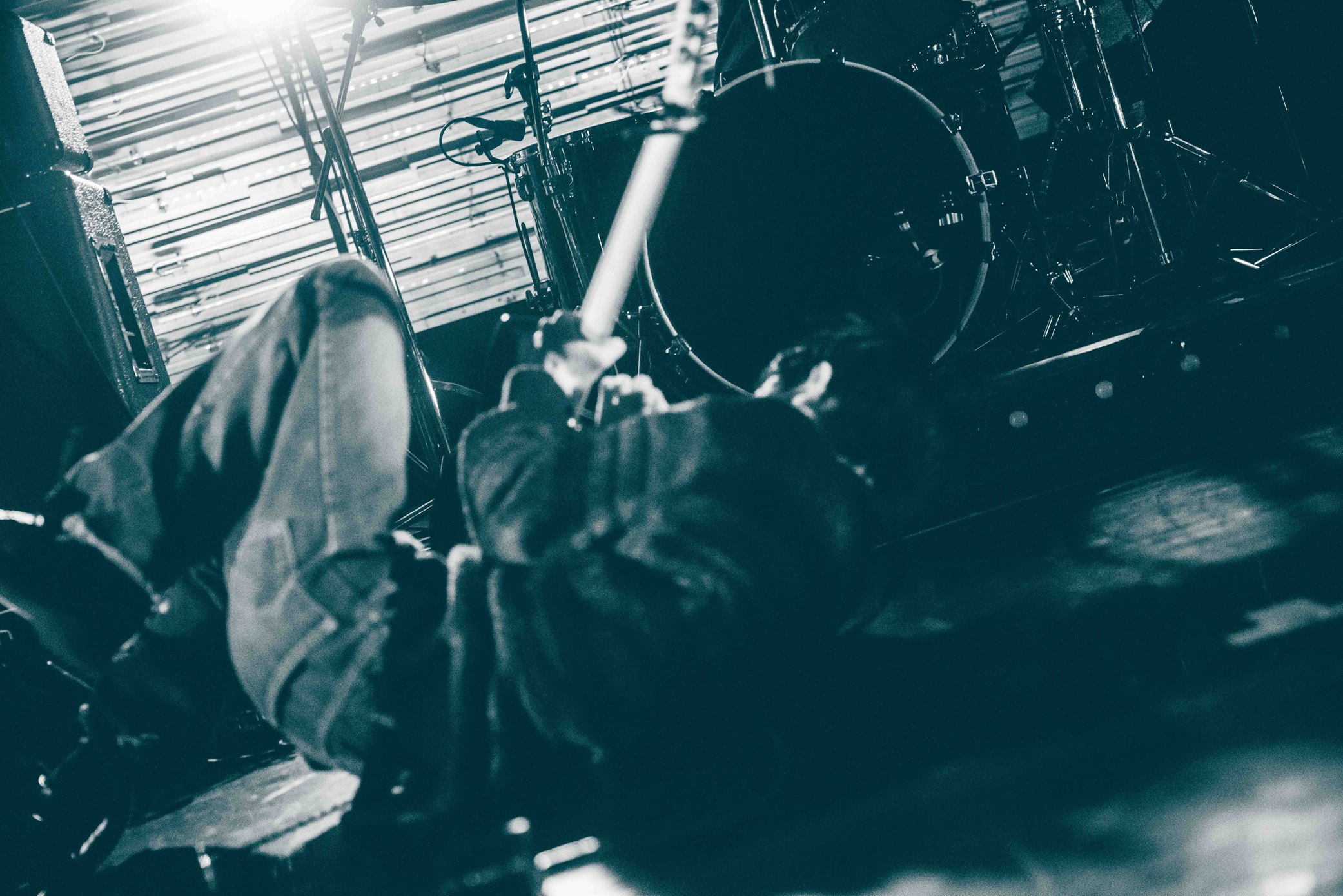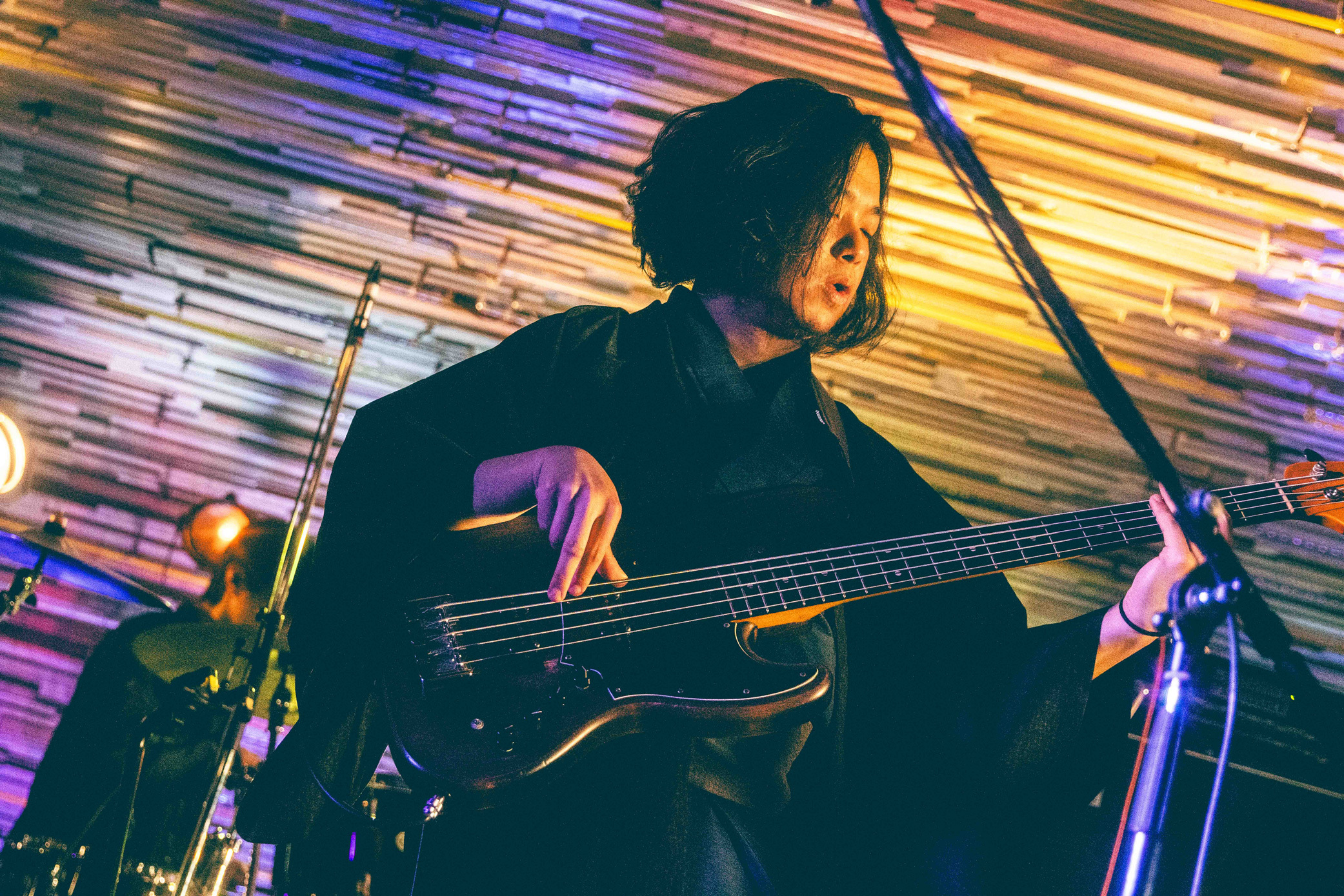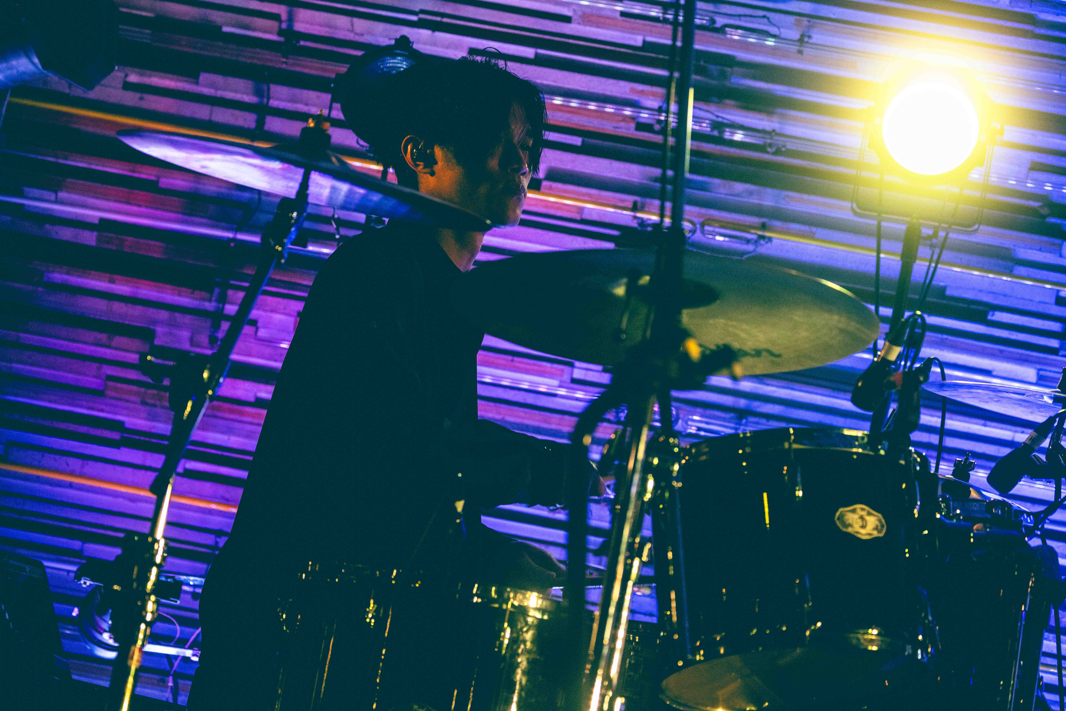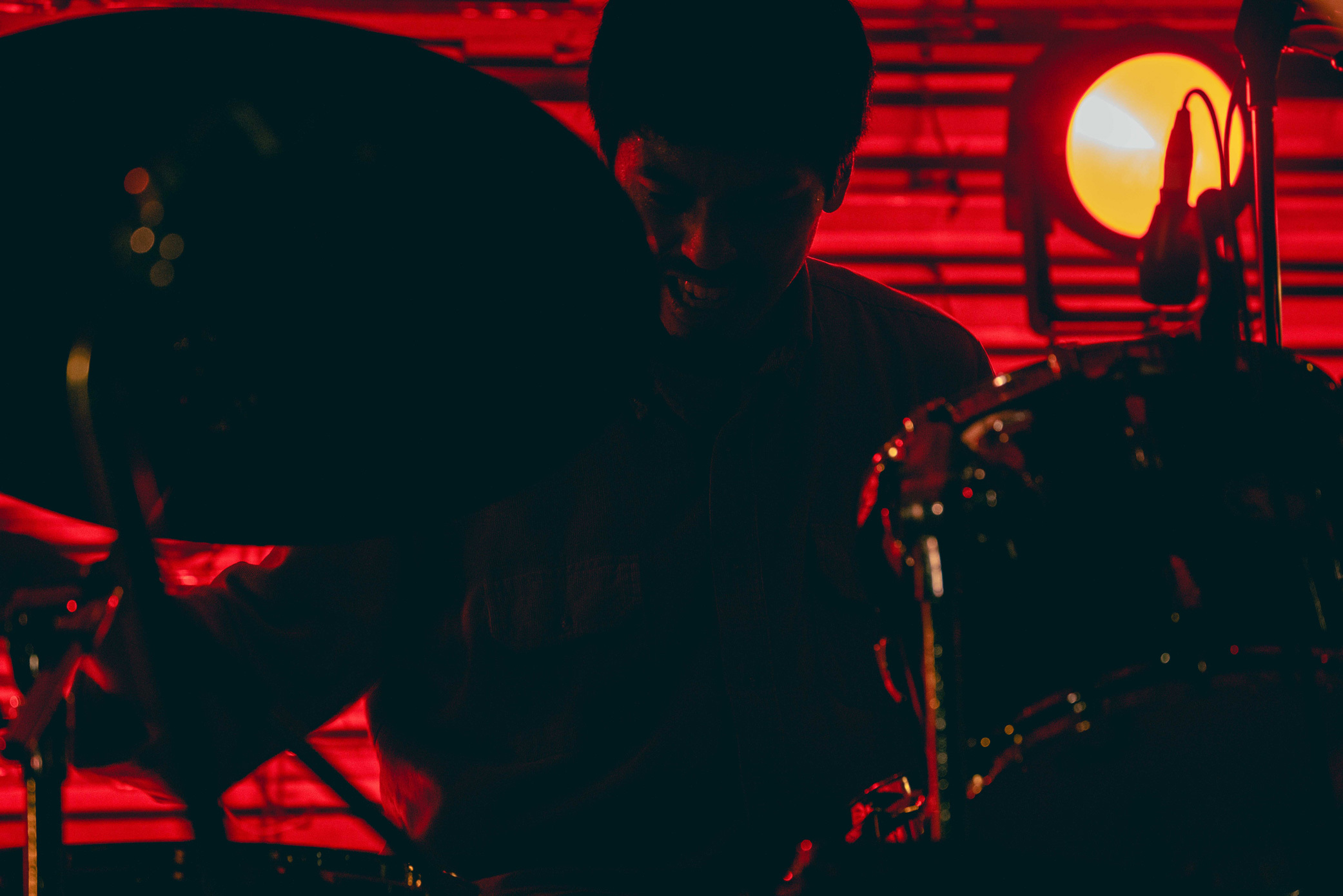 轟音ではありながら、時折はっきりと聴き取れる日本語も効果的で、現在どの曲とか関係なく情景が観えてきて情緒を感じる。たゆたうとは、こういうことなのだろうか。平熱のまま熱を帯びている……、緊張感ある浮遊感。最後、メンバー3人がドラムに向かって弾いている時、そんなことをふと想った。