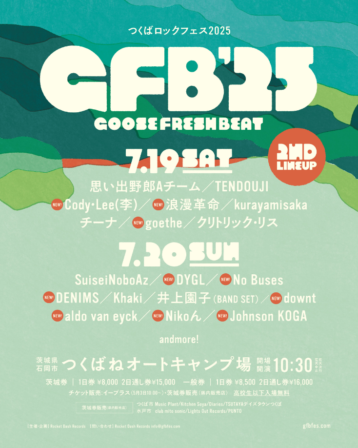 7月19日(土)・20日(日)に茨城・つくばねオートキャンプ場で開催される『GFB’25(つくばロックフェス)』から、第二弾出演アーティストのラインナップが発表された。