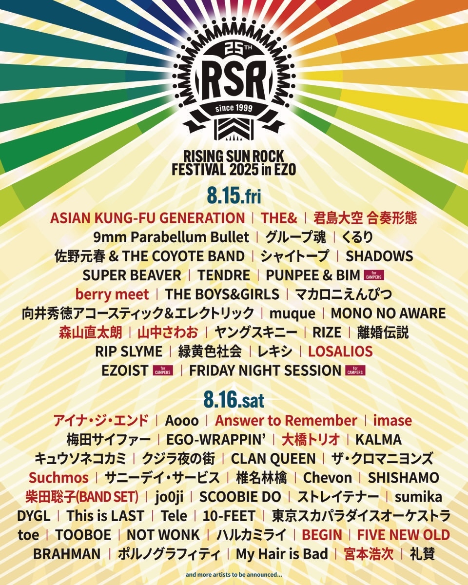 8月15日(金)・16日(土)に北海道・石狩湾新港樽川ふ頭横野外特設ステージにて開催されるオールナイト野外ロックフェスティバル『RISING SUN ROCK FESTIVAL 2025 in EZO』の第3弾出演アーティストと出演日が発表された。