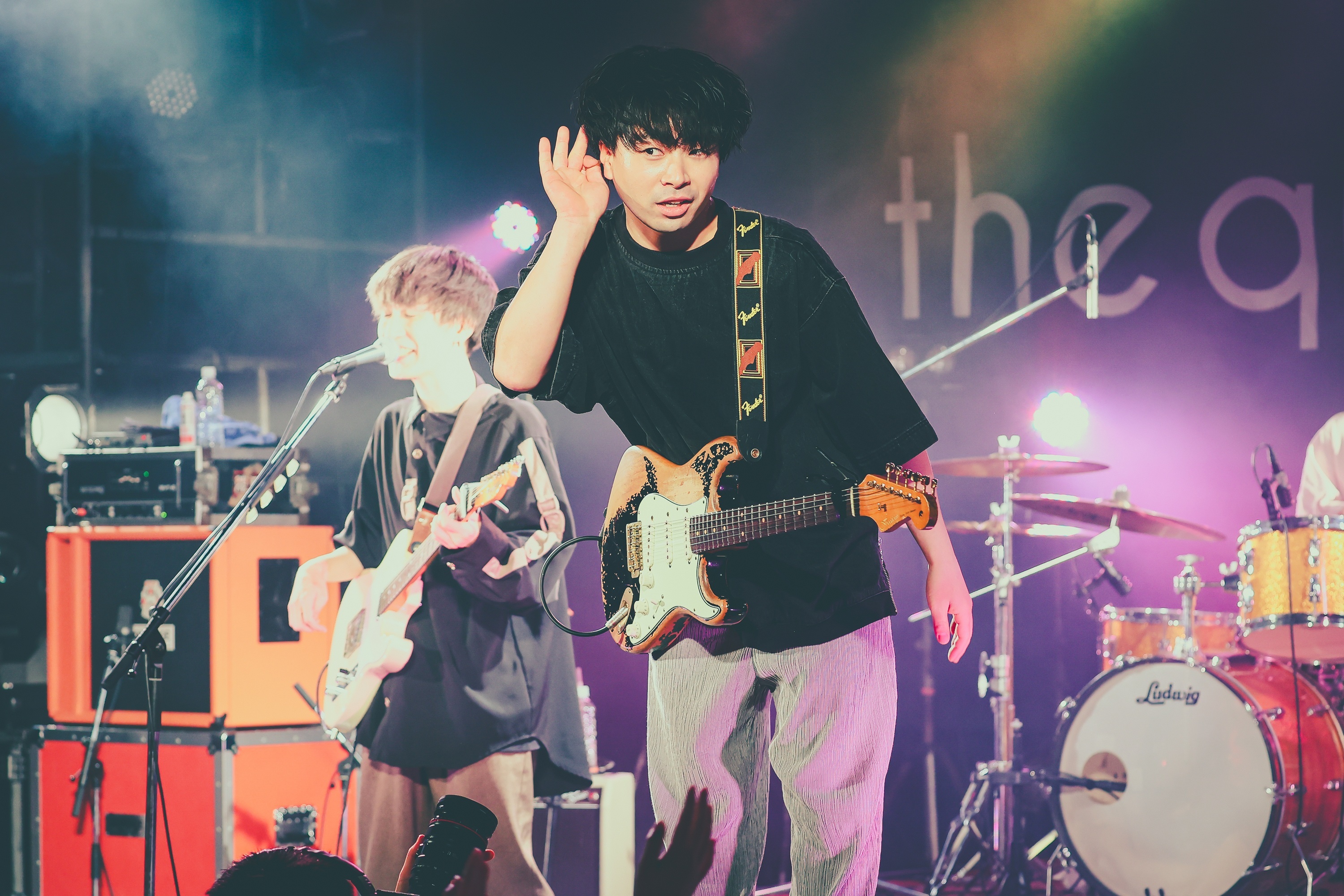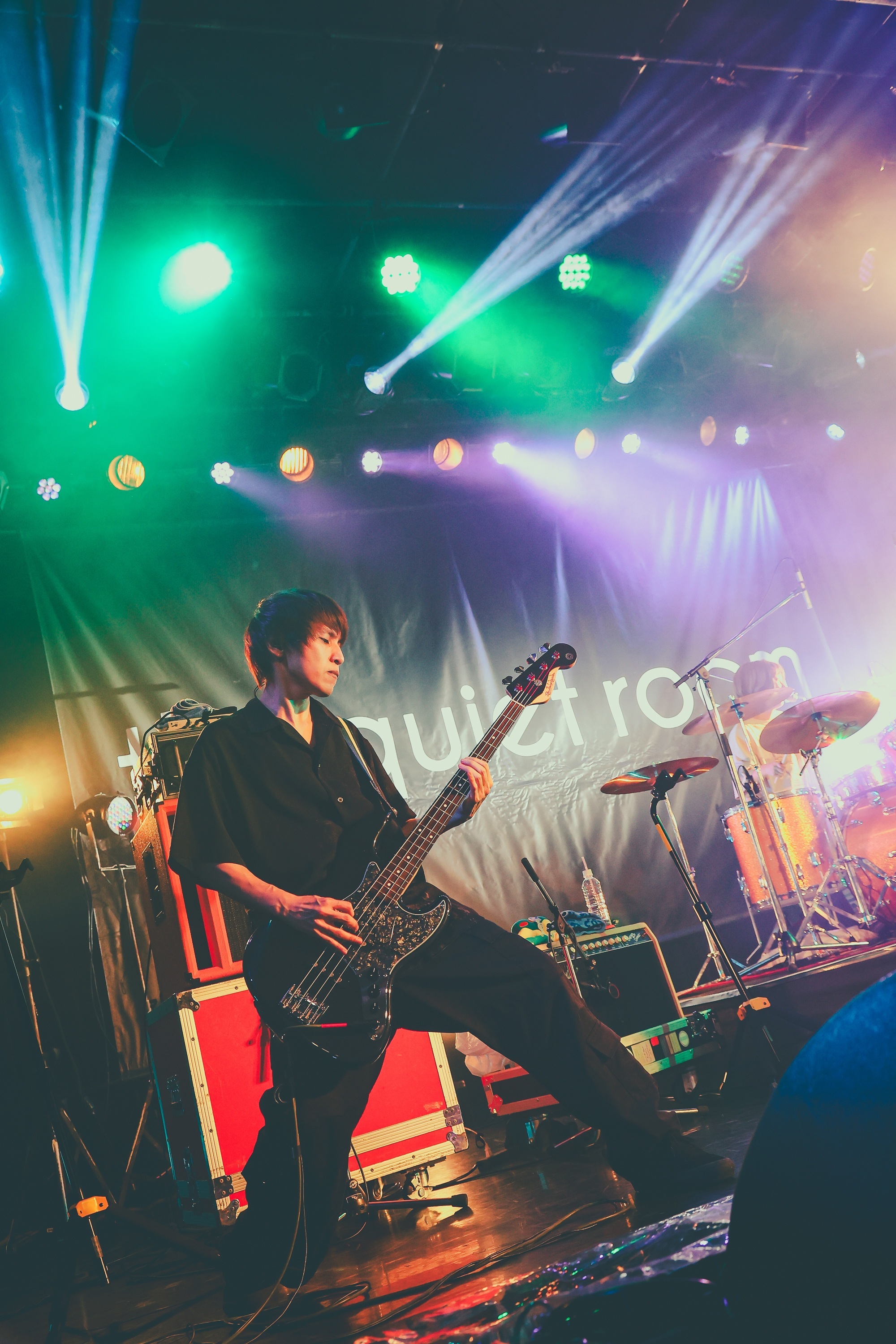 オープニングSEに乗せて斉藤弦(Gt)、前田翔平(Ba)、サポートメンバーのぴのり(Dr)がステージに登場し、最後に菊池が姿を現すと会場は盛大な拍手に包まれる。菊池は客席に目線を送ってから深々とお辞儀をすると、「the quiet roomです、よろしく」の挨拶とともに「Fressy」にてライブをスタート。軽快で爽快感の強いビートに合わせて、オーディエンスはクラップで大きなノリを作っていき、「Twinkle Star Girl」「平成ナイトコウル」と曲を重ねるにつれてフロアの熱気は一段と高まっていった。