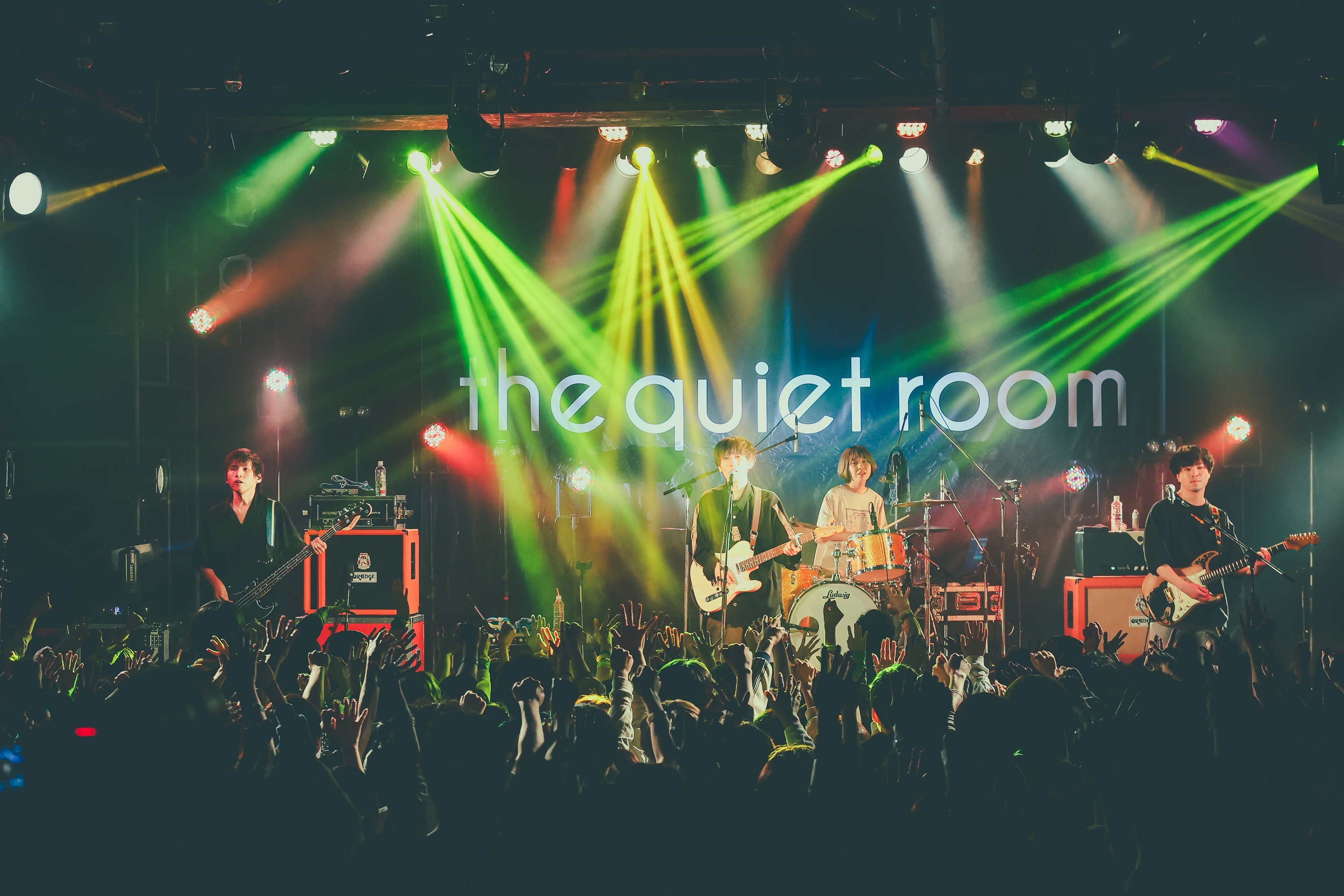 シャッフルビートが心地よい「夢で会えたら」、菊池の「全部出し切って!」を合図にクラップとシンガロングで一体感を作り上げる「パレードは終わりさ」でフロアの熱気が急加速。バンドの4人が向かい合って演奏を終えると、「最高です。ありがとう!」と観客に笑顔で感謝を伝える。そして「みんなに前を向いてほしくて、できるだけ前向きな言葉を残してきました。それは嘘とかではなくて、本当にそう思っていたから」と菊池が観客に告げると、「これからも俺らが残してきた歌をみんなの生活の中で、ふとしたときに聴いてくれたらなと思ってます。本当に今日まで応援してくれてどうもありがとう。最後に永遠の愛の曲をここに残して、全力で歌って帰ります。またどこかで会いましょう、the quiet roomでした」と伝えてから「キャロラインの花束を」を披露。全身全霊を込めて歌い演奏するバンドの姿を前に、観客もありったけの大きな声で歌い続け、クライマックスと呼ぶに相応しい感動的な空気に包まれてライブはフィナーレを迎えた。