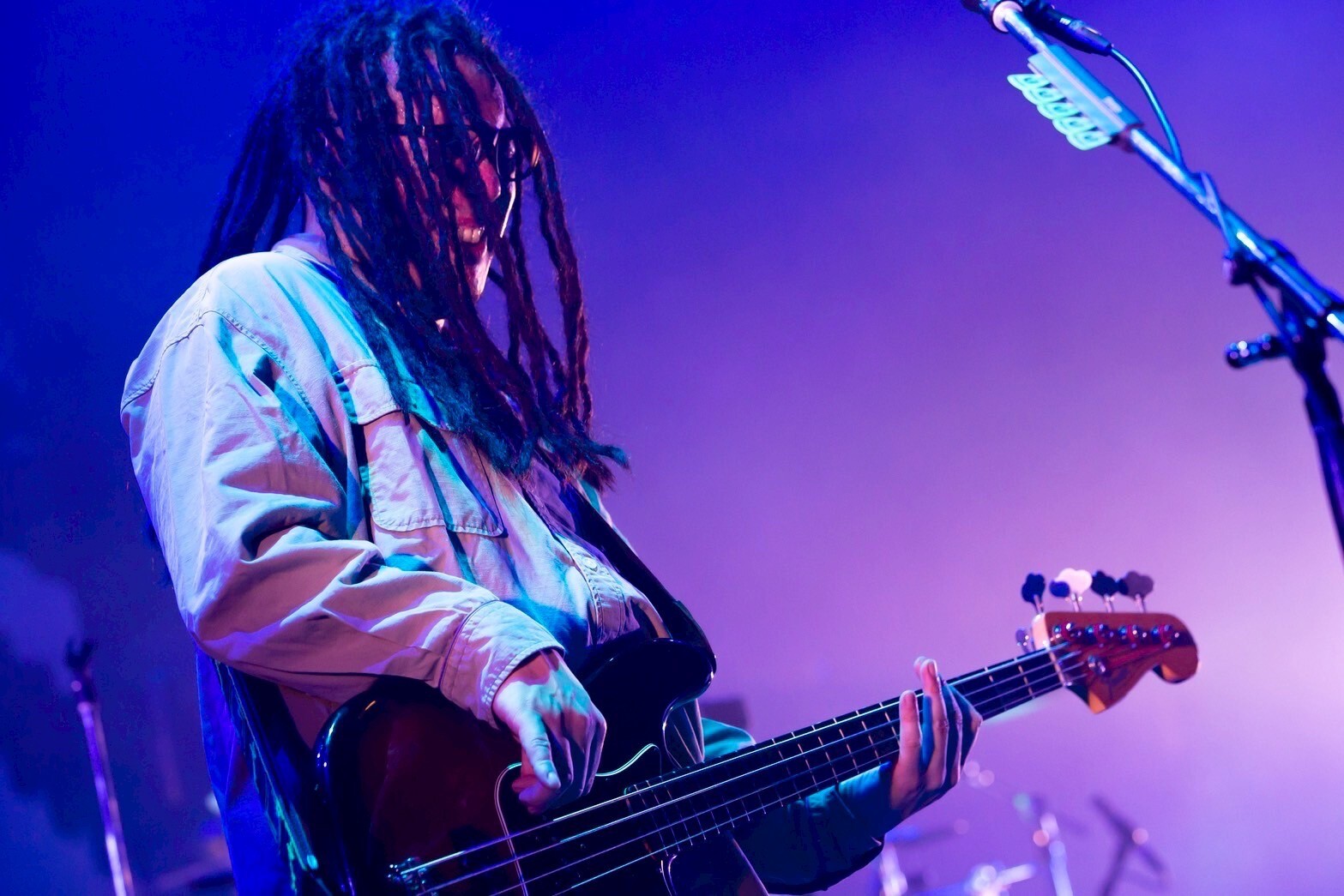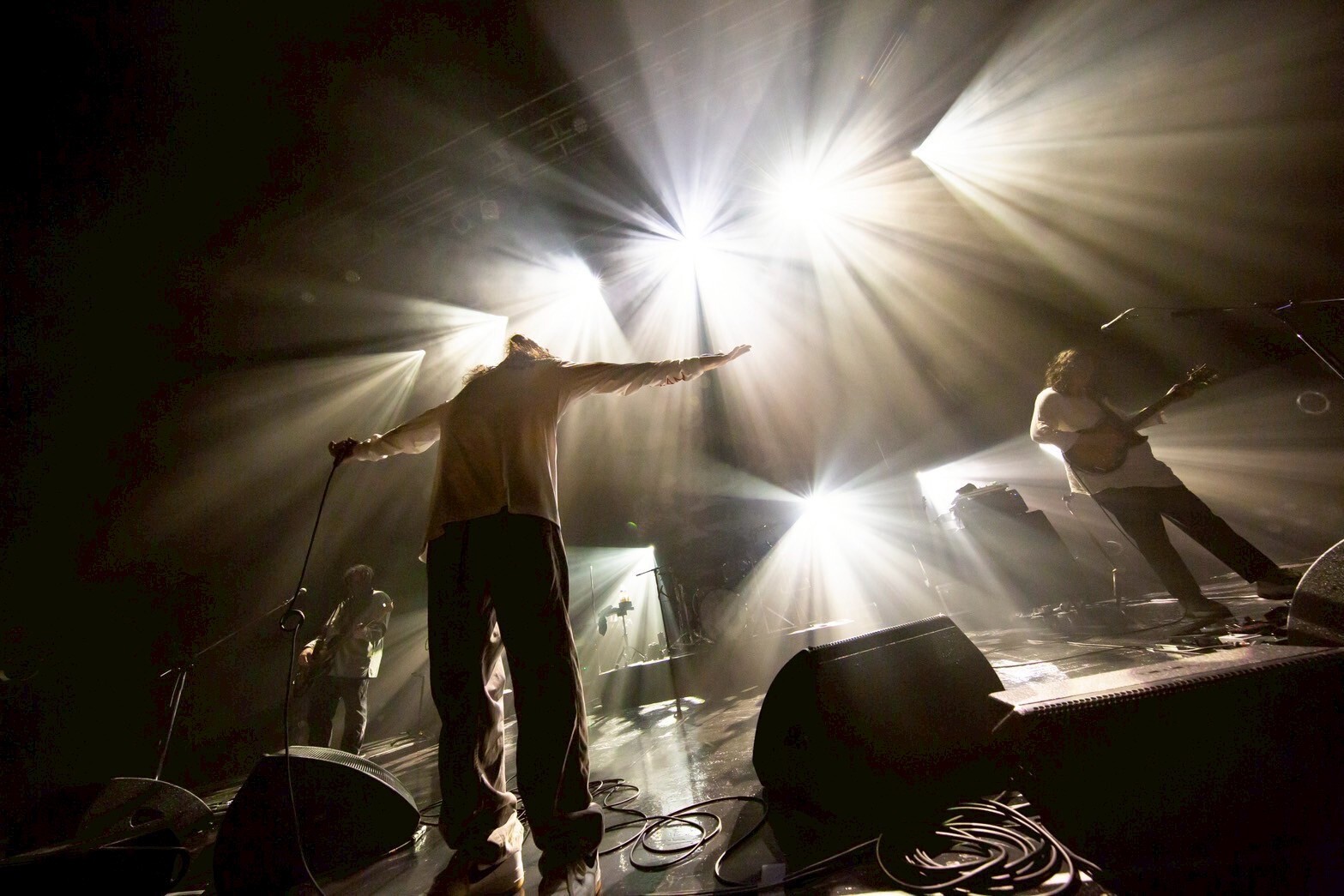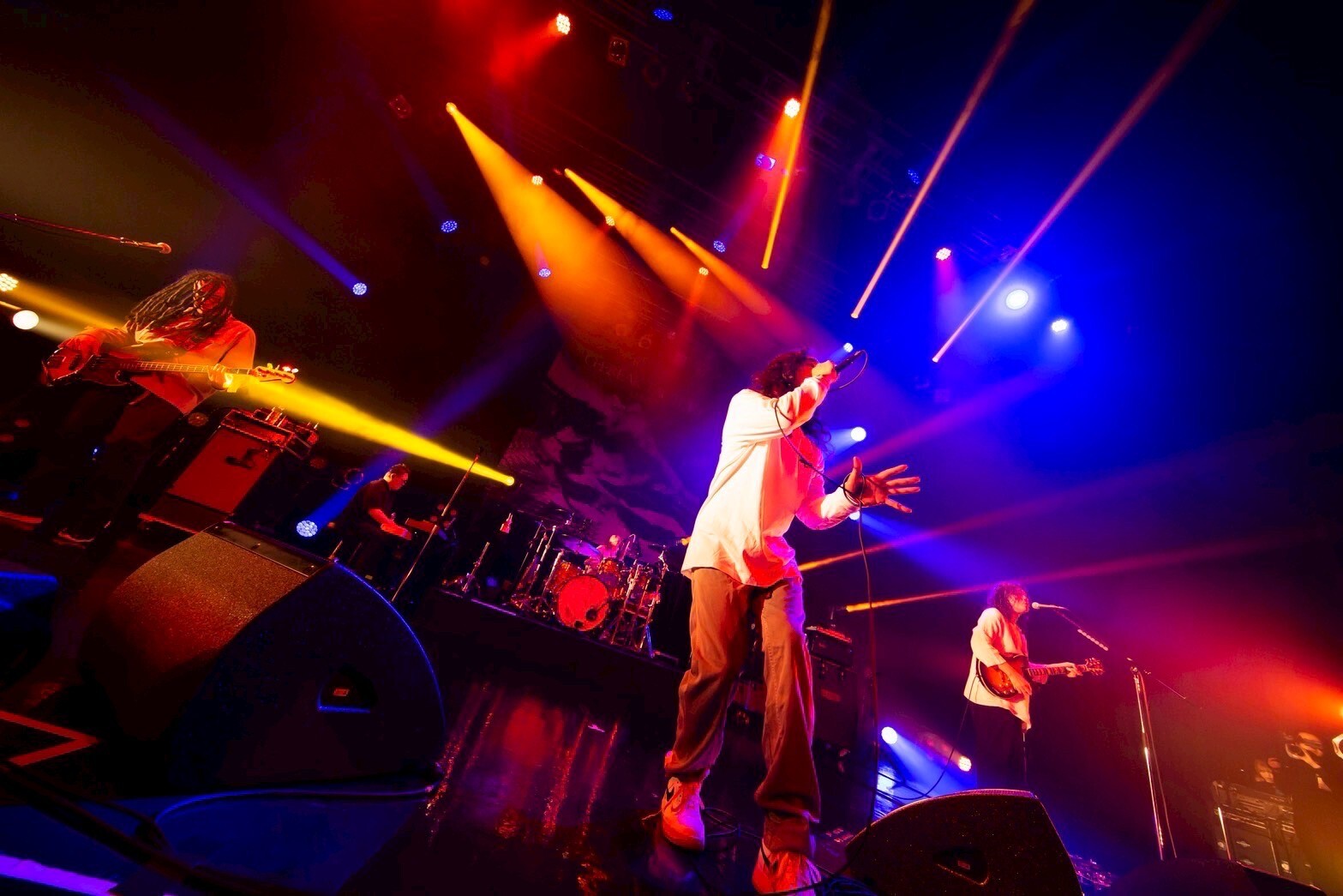 幕開けは原田季征(G)、吉橋”yossy”伸之(B)、岩本”leo”怜王(Dr)、サポートの多畠幸良(Key)によるジャムセッションから。ルーツレゲエのリズムにメランコリックなピアノ、気迫のギターソロを経て茂木洋晃(Vo)が登場、おもむろに「アメイロ」を歌い出す。茂木と共に歌う声の大きさで、みんなどれだけ『HAZE』を聴き込んできたかよくわかる。「よく来たね、ありがとう」。茂木の声も弾んでる。
