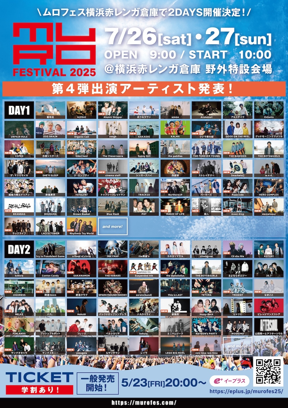 7月26日(土)・27日(日)に横浜赤レンガ倉庫にて開催される『MURO FESTIVAL 2025』の第四弾出演アーティスト39組が発表された。