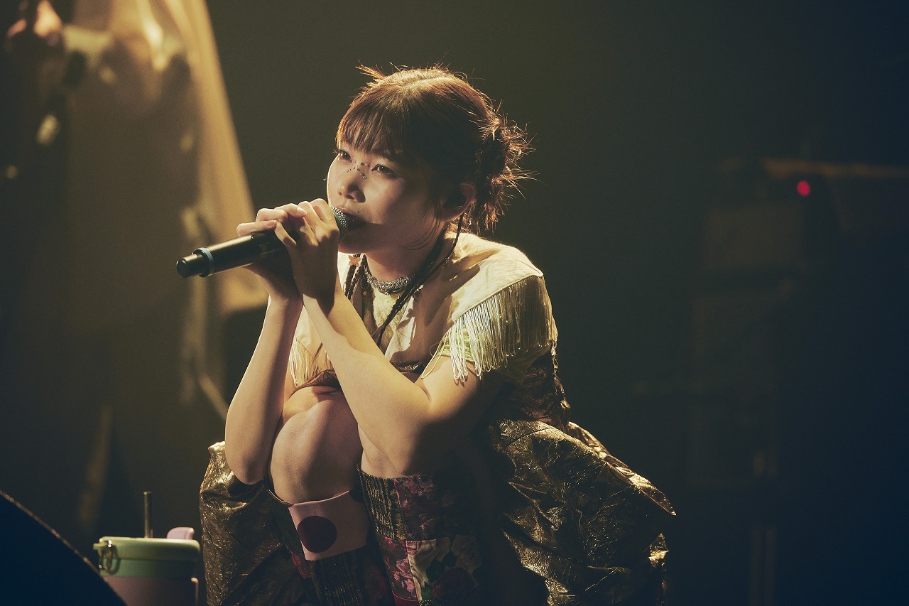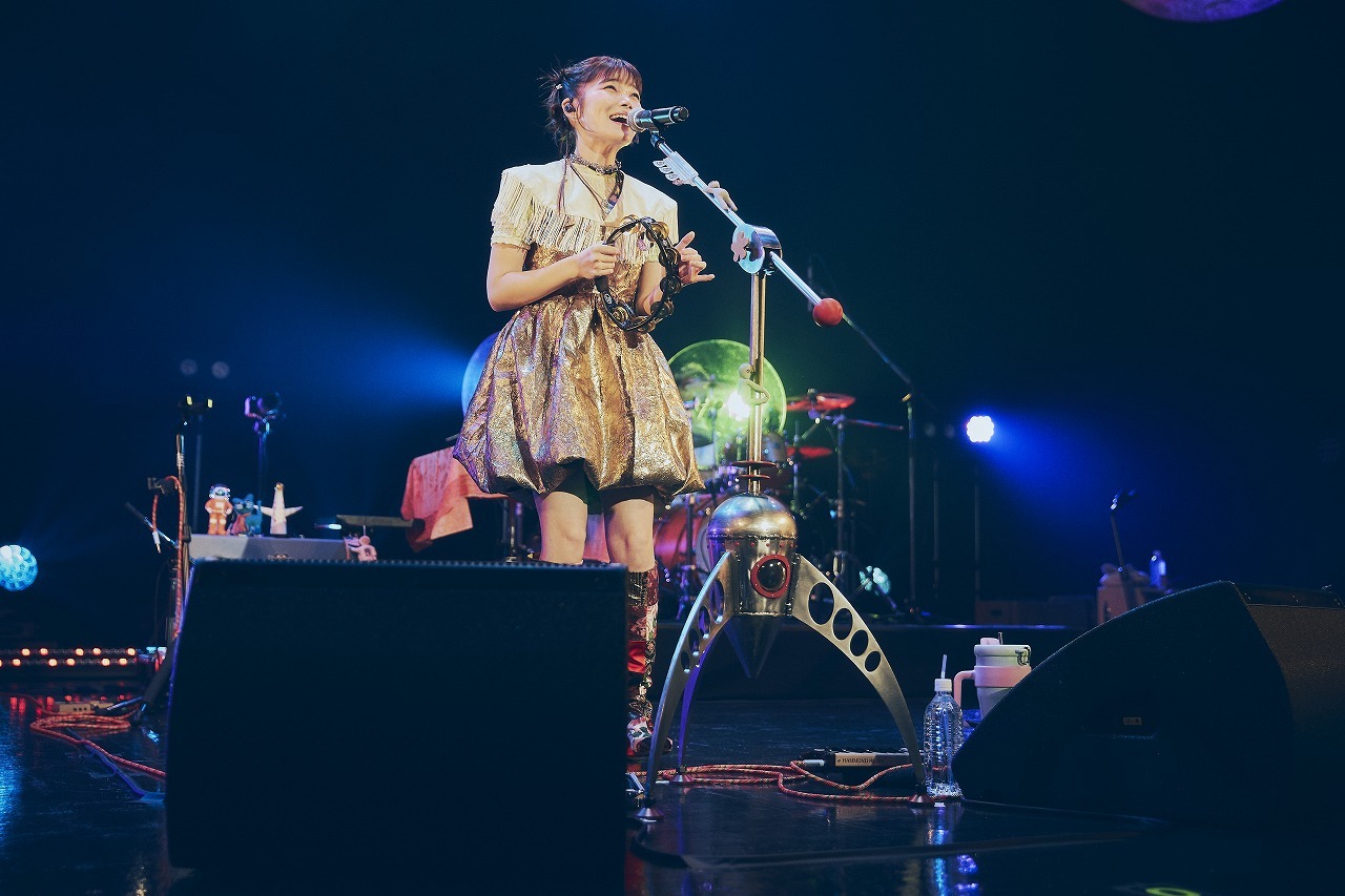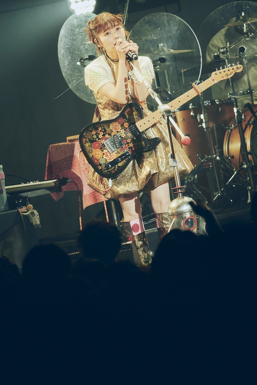 「チッチー!」、野太い声の中に小さな子どもの声が混じることでピースフルなムードになる中、「みんなとの距離をちょっとずつ近づけていけたら」と、ライブタイトル『CENTIMETRE』の意図を話し、堂々たるステージングを見せるも「全然緊張してるんですけど、今日も最後まで私らしく届けたいと思います」と力強く宣言した。
