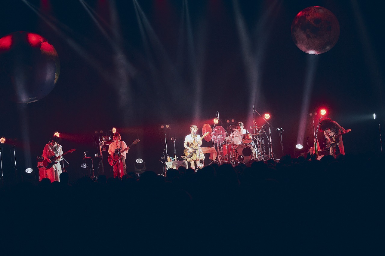 チッチがアコギを弾く「夕焼けBabyblue」では宵闇の手前の“ブルーアワー”が歌と空間系のギターサウンドでせつなさを運び、「おとぎばなし」では、それこそジョン&ヨーコの愛と平和の精神とラブソングのロマンがギター3本のシューゲイザーサウンドでアップデートされる。間奏のギタリスト2人のユニゾンフレーズもゴリゴリのオルタナテイストで、それがチッチの世界観の骨格を強化している印象だ。打って変わってハンドマイクでR&B調の「百日草」をやさしい声で届け、オーセンティックなミディアムロックバラード「君へ」では言葉が伝わる素直な歌唱に打たれる。自分のままで生きていい、と隣で一緒に歩いてくれる感覚を確かに支えるバンドアンサンブルは、誤解を恐れずに言うとTHE YELLOW MONKEYやエレファントカシマシの堂々たるロックバラードを思い起こさせる強度だった。