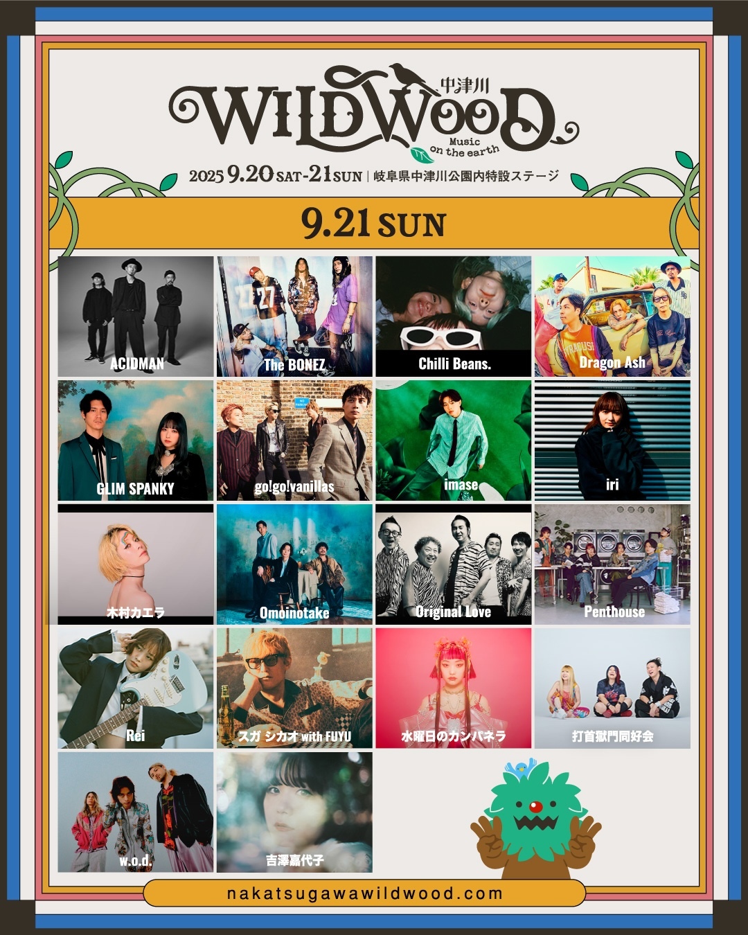 岐阜県中津川市で9月20日(土)・21日(日)の2日間にわたって開催される新たなロックフェス『中津川WILD WOOD 2025』の最終出演アーティストが発表された。