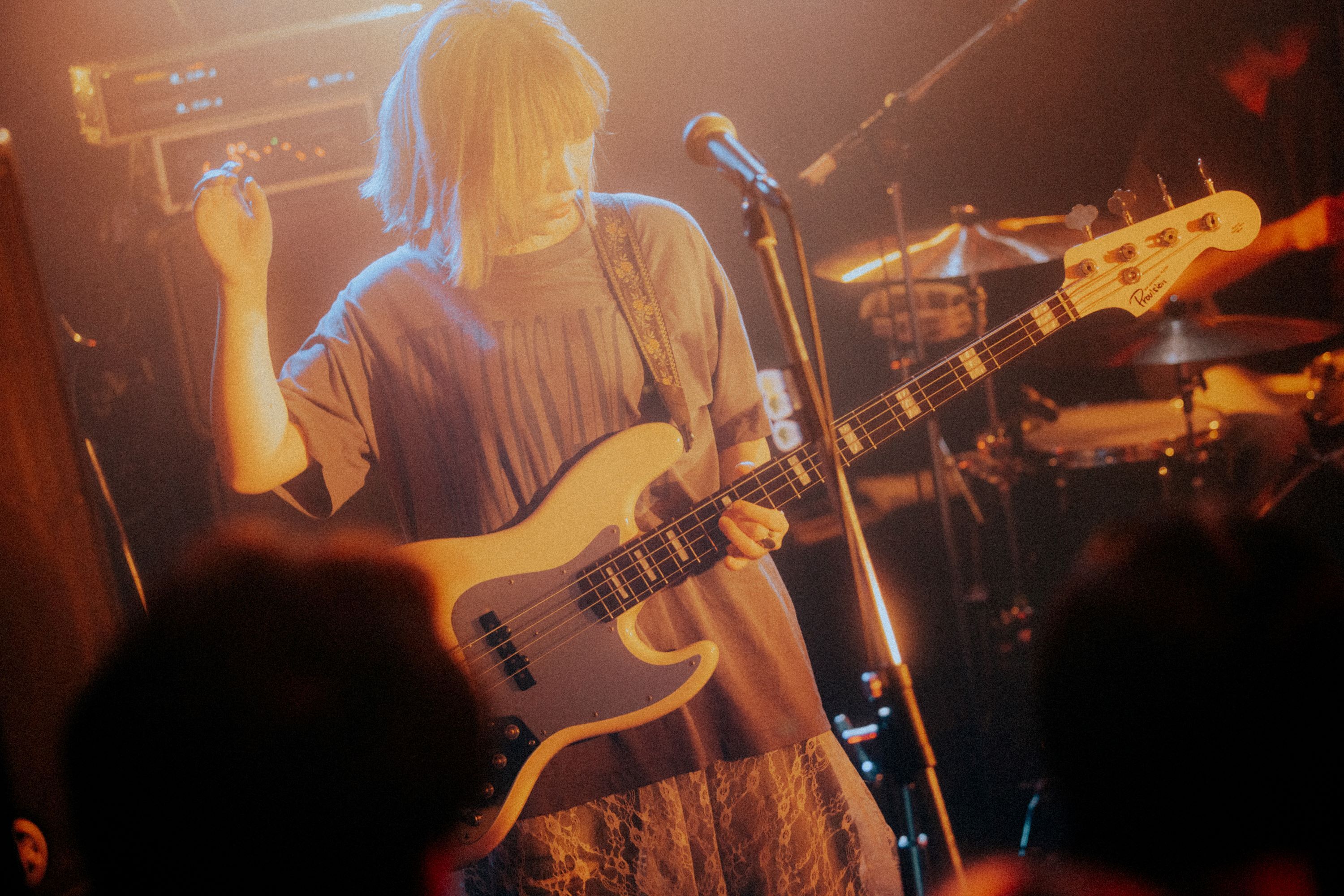 最初は恋愛についてを綴った歌詞を主軸としてリスナーを獲得しつつ、そこから人と人の交わりの中で生まれる関係性や感情を紐解き、最新アルバム『Empire』ではパーソナルな部分と真正面から向き合った。現在公開されているyonigeの公式YouTubeでは、牛丸が実父に会いに28年振りに故郷・オーストラリアを訪れるドキュメンタリー映像を公開しており、その中で彼女は「自分って一生自分なんだな、みたいなことにも気付いたし、悪いところは直したいけど、譲れない部分もあるんだなってことにだんだん気付いた」「(月日を経て)ありのままの自分を受け入れて愛すっていうことができました」と語っていた。その上で聴く、今年2月にリリースされた最新曲「Without you」は特にグッと来た。<わたしはここからは/弱いままで強くあるよ>と真っ直ぐ歌う姿には、牛丸が、そしてyonigeが到達したひとつの答えが垣間見える。忘れてしまうことや、在ったのに無くなってしまったもの、自分の力ではどうしようもない/なかったこと──そういった一種の不可抗力を追う大切さももちろんあるが、今のyonigeはそれらを肯定しながら受け入れるという器が出来上がったと思わせてくれる歌詞であり、メロディとしてもyonigeが新たなフェーズに入ったことが分かる。グルーヴの高いバンドサウンドが推進力となり、曲が進むに連れて光力が増していくような、彼女たち自身を、そしてそれを聴く私たちの未来を照らしてくれる楽曲だ。この曲があるからこそ、昔の曲もさらに深い意味を持って聴こえてきたのだから面白いし、ライブ全体を通して、yonigeが培ってきたバンドストーリーを辿っていくことができた。