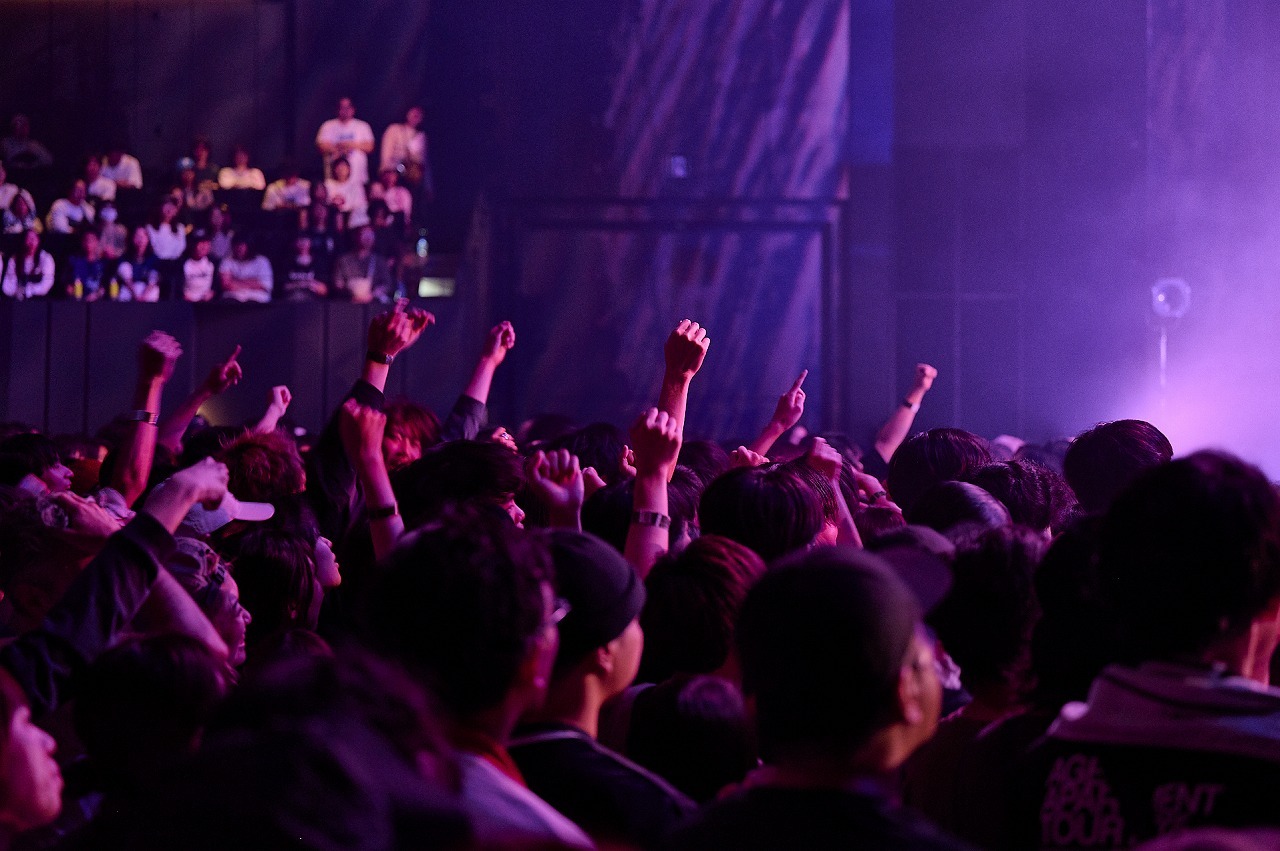 夕暮れのガーデンステージに登場したCOMEBACK MY DAUGHTERSが、エモとルーツミュージックをブレンドさせたオリジナルのグルーヴで観客の心を一つにする。PIZZA OF DEATHのTシャツを着た、年季の入ったファンも大喜びだ。ゆったりマイペースな活動のバンドゆえ、今日ここで観られたのはとても貴重だ。ホールステージに戻ると3階席まで人がぎっしりで、大歓声を浴びてAge Factoryのライブが始まった。曲間にひっきりなしに飛ぶ声援に応え、「みんな酔っとるの(笑)。ビールのフェスで野次が飛ぶのは光栄ですよ」とボーカルの清水英介が笑う。和やかな、しかし熱い空気がホールを満たす。楽しみ方は自由だ。