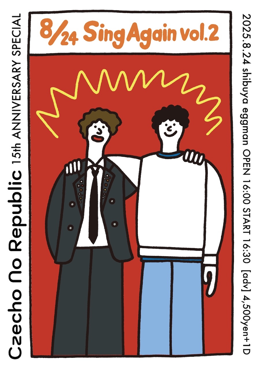 本イベントは『Czecho No Republic《Sing Again vol.2》』と題され、4月にthe telephonesとの共演で大阪にて実施された《Sing Again》の東京編となる。
