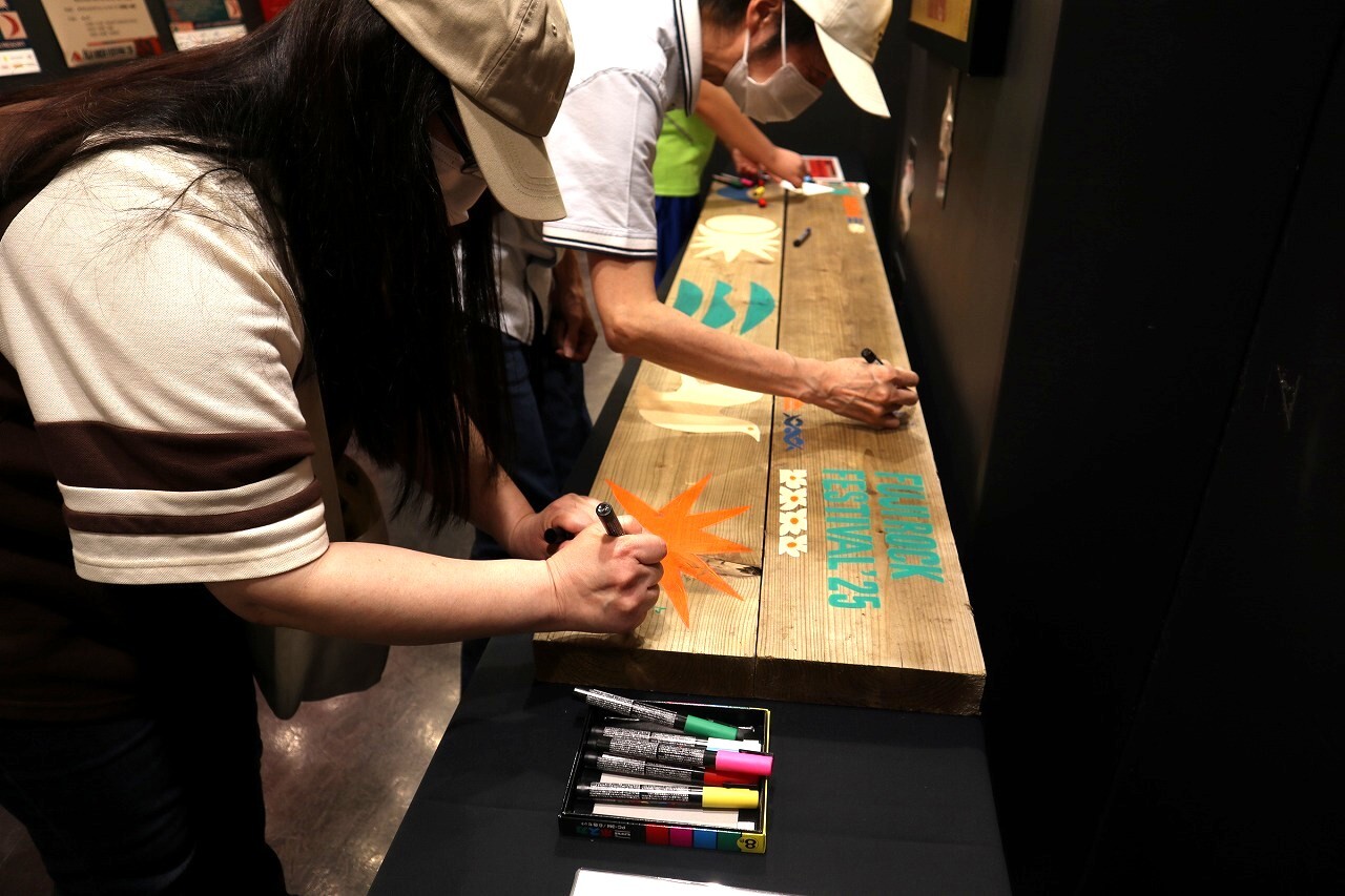 会場となったタワーレコード渋谷店地下1階には『フジロック』の過去の名場面を切り取った貴重なライブ写真や、伝説の初回を含む歴代のフェスポスターが展示されている他、来場者が自由にメッセージや絵を書き込める「ボードウォークの寄せ書き」コーナー、「JOHNNIE HIGHBALL BAR」では『フジロック』会場限定のジョニーハイボールフジロックスタイルの特別販売が実施されていた。