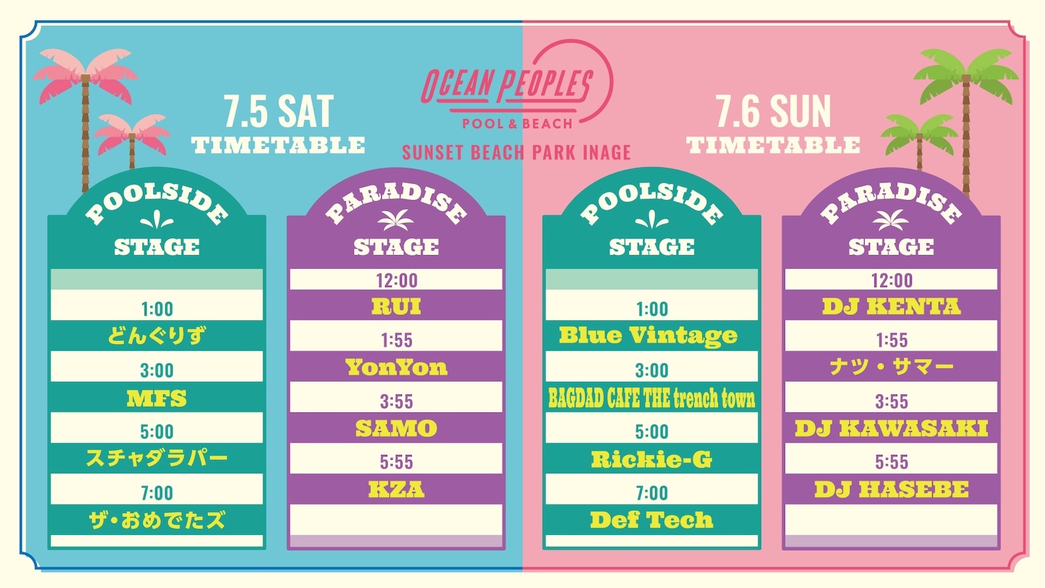 2025年7月5日(土)・6日(日)に稲毛海浜公園内SUNSET BEACH PARK INAGEで開催される、プール&ビーチフェスティバル『OCEAN PEOPLES’25』のタイムテーブルが公開された。