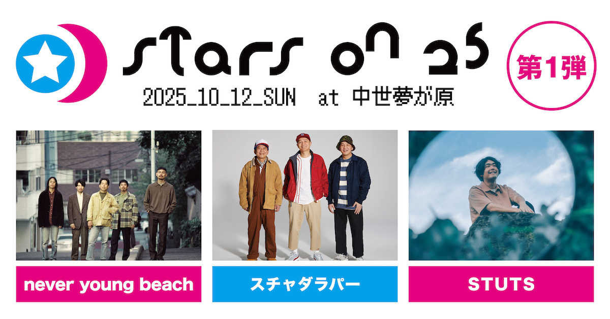 10月12日(日)に岡山・中世夢が原にて開催される野外音楽フェス『STARS ON 25』に、never young beachら3組の出演が発表された。
