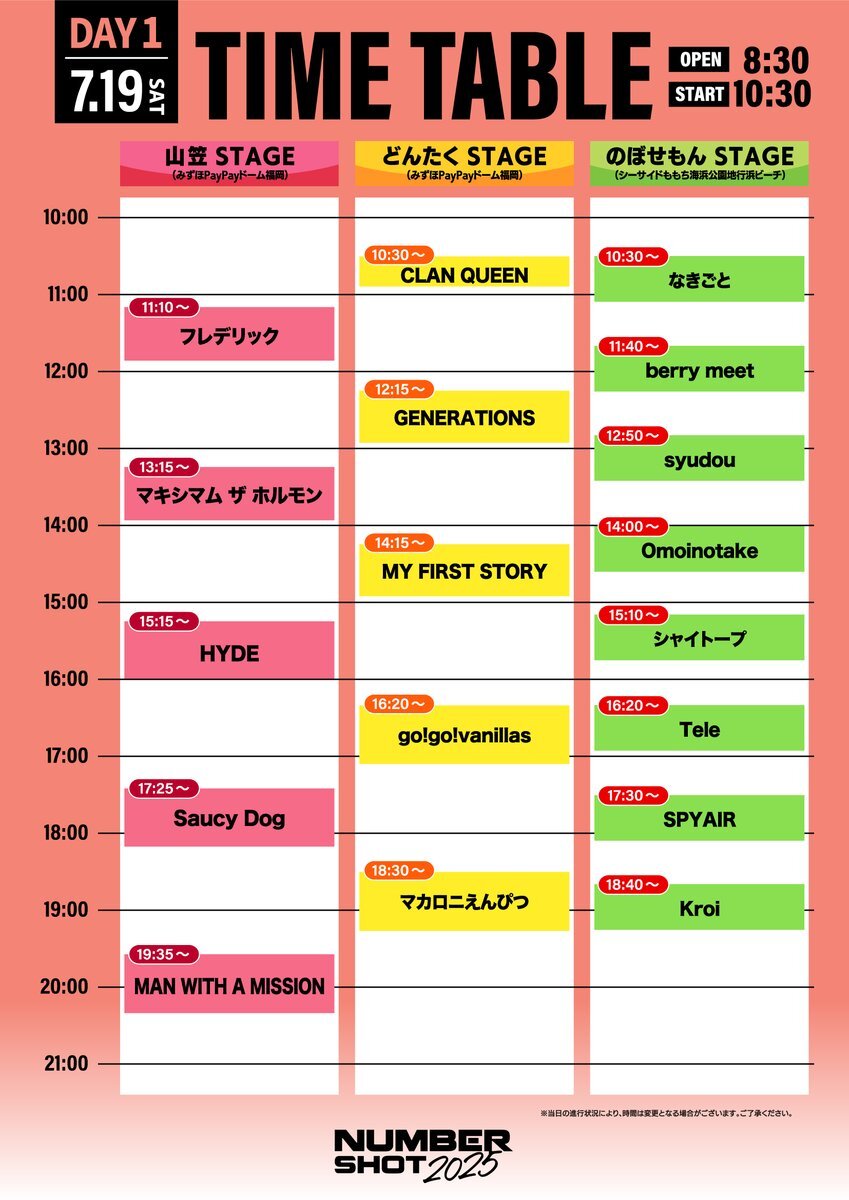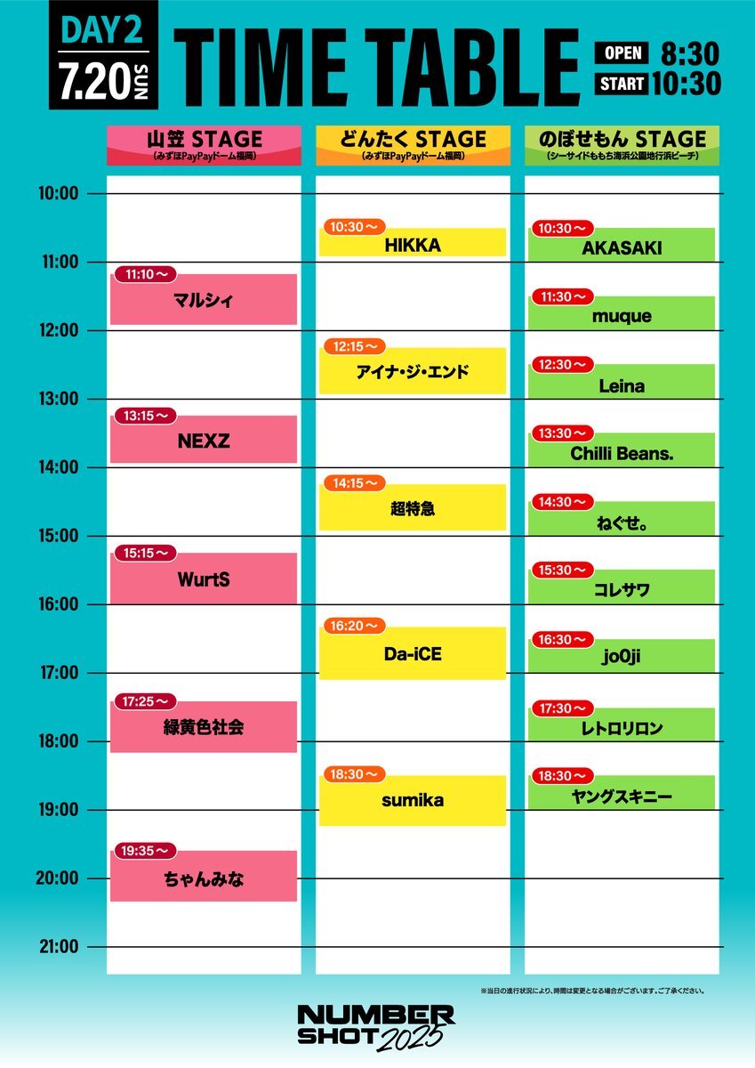 2025年7月19日(土)~21日(月祝)の3日間、みずほPayPayドーム福岡・シーサイドももち海浜公園地行浜ビーチにて開催される九州最大級の夏フェス『NUMBER SHOT2025』のタイムテーブルが発表された。