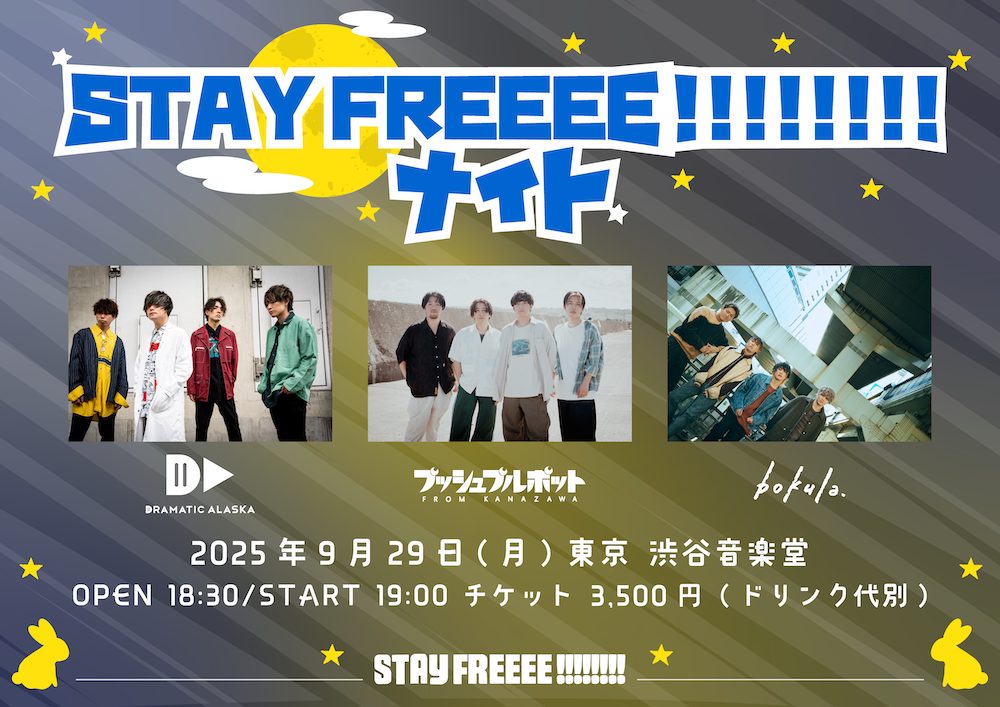 ドラマチックアラスカ、プッシュプルポットやbokula.出演 LD&Kのレーベル「STAY FREEEE!!!!!!!!」が約2年ぶりにイベント開催
