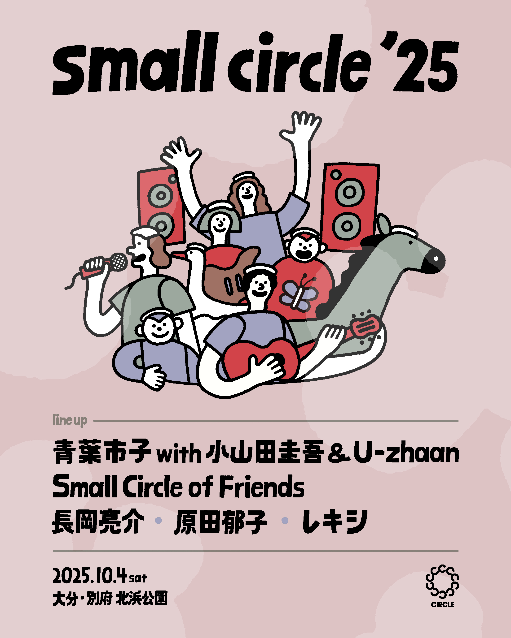 毎年5月に福岡・海の中道海浜公園にて開催される、九州を代表する野外音楽祭『CIRCLE』。その新たな試みとして、日本随一の温泉観光地・別府にてスピンオフイベント『small circle』が開催されることとなった。会場は別府市中心部に位置し、別府湾を一望できる北浜公園。青葉市子 with 小山田圭吾 & U-zhaan、Small Circle of Friends、長岡亮介、原田郁子、レキシの5組によるアコースティック・ライブが繰り広げられる。