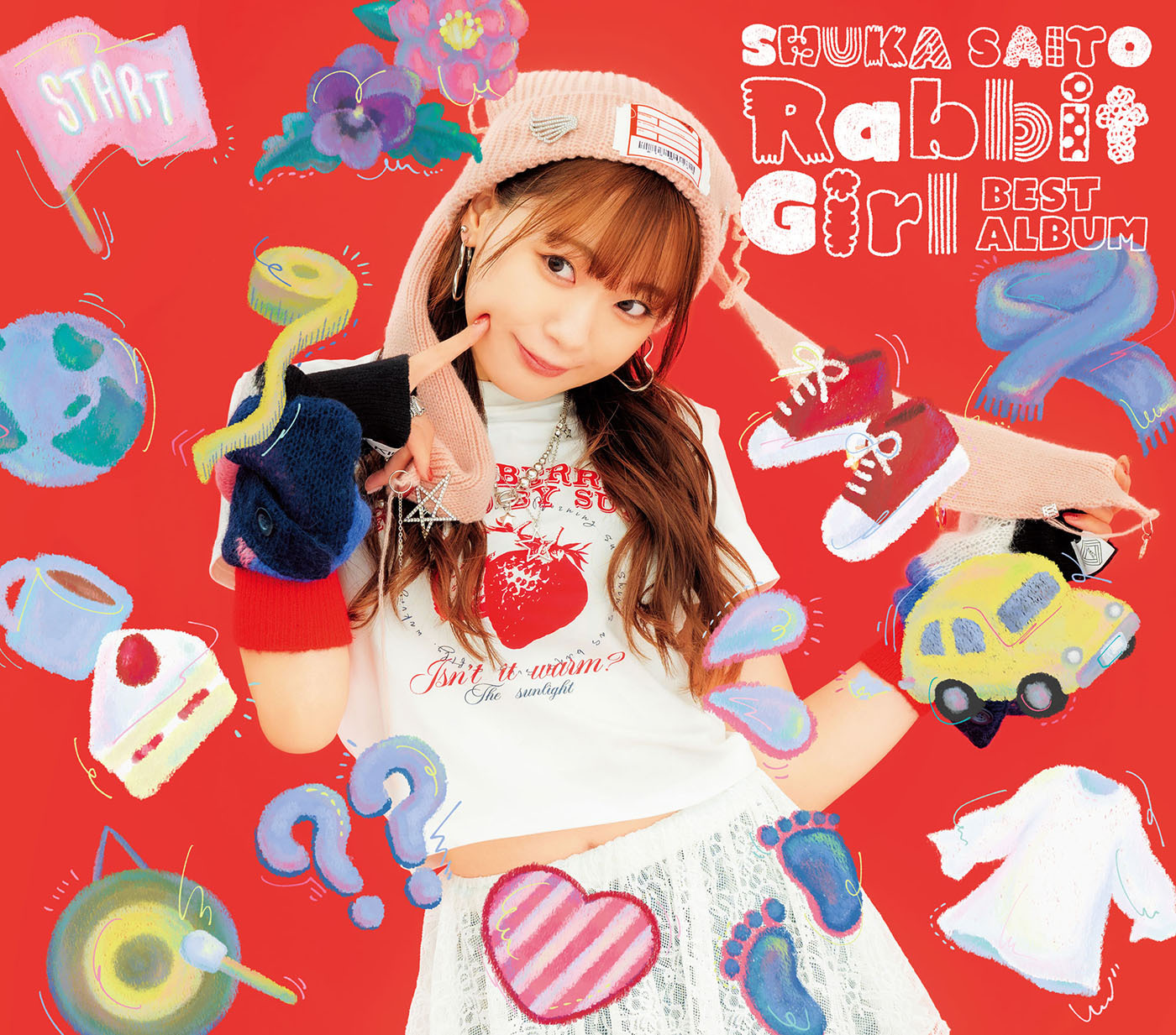 さらにベストアルバムのジャケット写真も公開。タイトルである「Rabbit Girl」に合わせてうさぎ耳の帽子をかぶった斉藤朱夏を囲むように、収録楽曲それぞれのイメージに合わせたモチーフイラストがちりばめられたデザインとなっている。