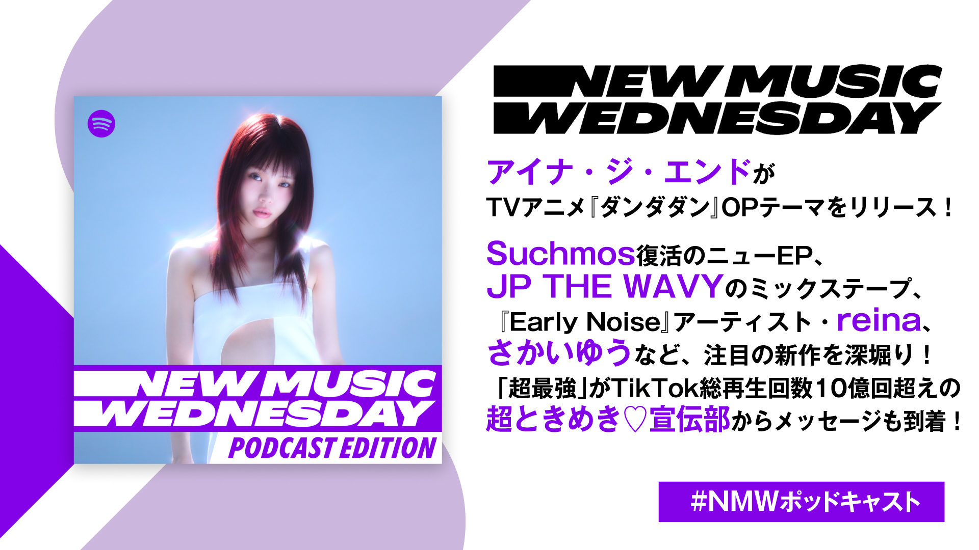 今週はアイナ・ジ・エンドがTVアニメ『ダンダダン』第2期のオープニングテーマをリリース!「超最強」がTikTok総再生回数10億回を超えた超ときめき♡宣伝部からのメッセージも到着! Suchmos復活のニューEP、JP THE WAVYのニューミックステープ、『Early Noise』アーティスト・reinaのニューアルバム、日本人アーティストとして初めて『NPR Music Tiny Desk Concerts』に出演したさかいゆうのセッションEPなどピックアップ。この1週間の気になる音楽ニュースも深堀り! アーティストのライブやフェス情報も掲載しているので要チェックだ。番組への感想やリクエストはSpotifyアプリのコメント機能から投稿を。