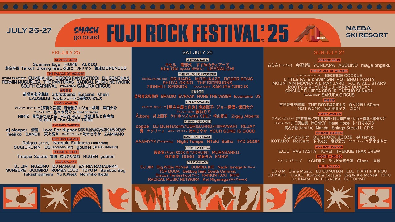 最終ラインナップ & タイムテーブルも発表になり、『フジロック’25』はもうすぐそこ。チケットは各券種日の前日まで購入可能だが、売り切れ次第販売終了となるのでお求めはお早目に。