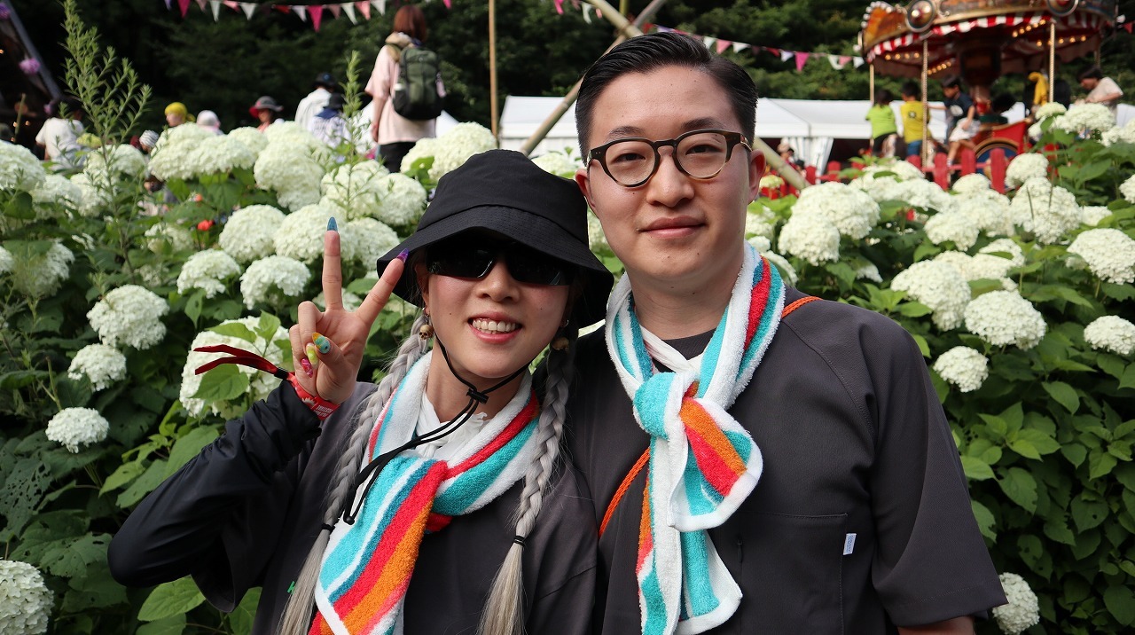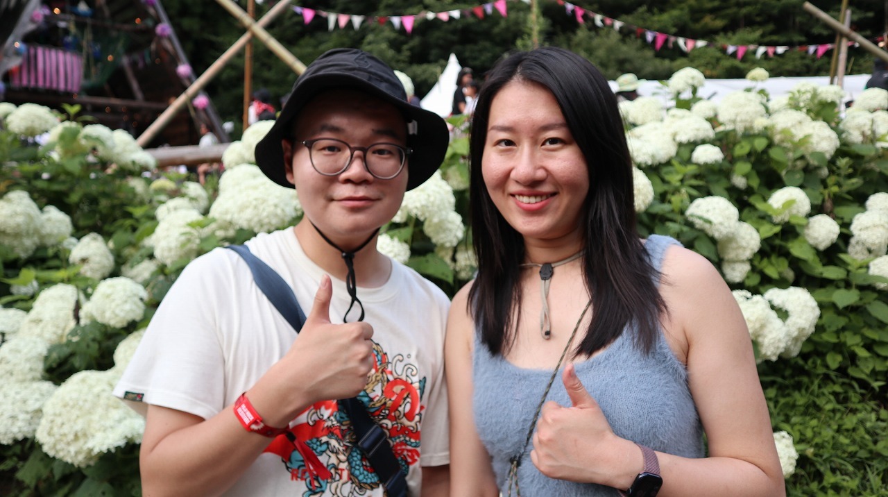 パンダの故郷である中国四川省の成都(チョントゥー)から来たジェイソンさん(30歳)とマンゴーさん(31歳)は、夫婦でフジロックに初参加。関西国際空港へ降り立ち、大阪から京都、名古屋を旅して東京へ。11日間の旅行でフジロックには1日券で入場されたそうで、フジロックに来た理由は「とても面白そうだからです。ある人からはとっても楽しくて国際的だよって聞きました」とジェイソンさん。さらにマンゴーさんは「私たちは日本のすべてが好きなんです」という、うれしい言葉も。