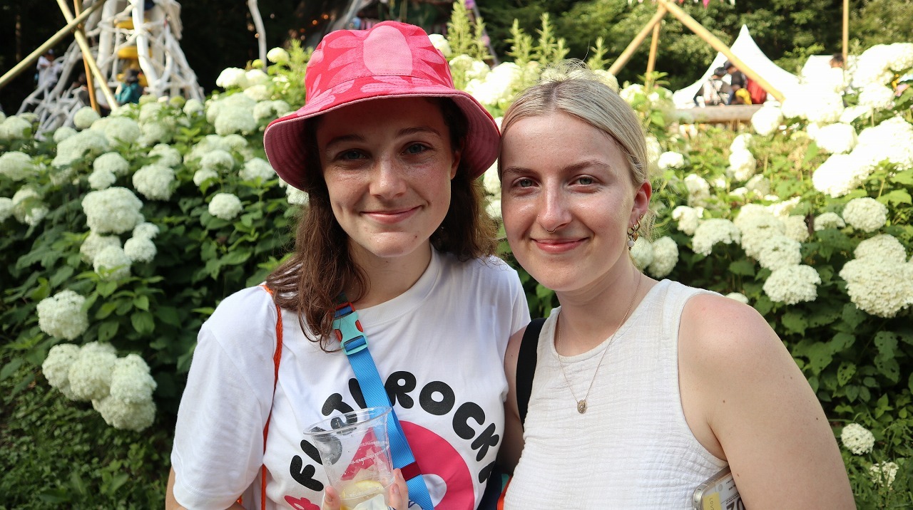 観たいアーティストは「girl in red、The Last Dinner Party、Angie McMahon。彼女たちが私たちのトップ3ね。とっても楽しみ!」という二人に、フジロックの魅力を訊ねると、ケイリーさんは「音楽がとても良くて、ドリンクもおいしい。それがいいし、とても素敵です。これほど大きなフェスに来たのは初めてで、ただただ最高」、アンジーさんは「ここにはたくさんの人がいるのに、かなり広々してる。座るのにもいい場所が多いですね」とのこと。