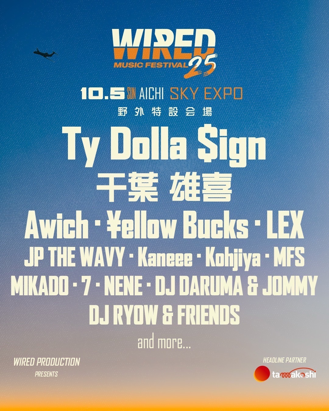すでに発表されている、Ty Dolla $ign / Awich / JP THE WAVY / Kaneee / Kohjiya / LEX / MFS / MIKADO / 7 / NENE / DJ DARUMA & JOMMY / DJ RYOW & FRIENDS に加え、今回の発表によって、2025年のWIREDはますます注目を集めるフェスティバルに。今後もさらなる出演者の発表を予定しているとのこと。