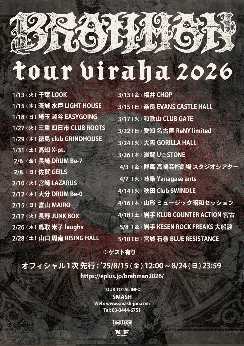 BRAHMANが、ツアー『BRAHMAN tour viraha 2026』の開催を発表した。