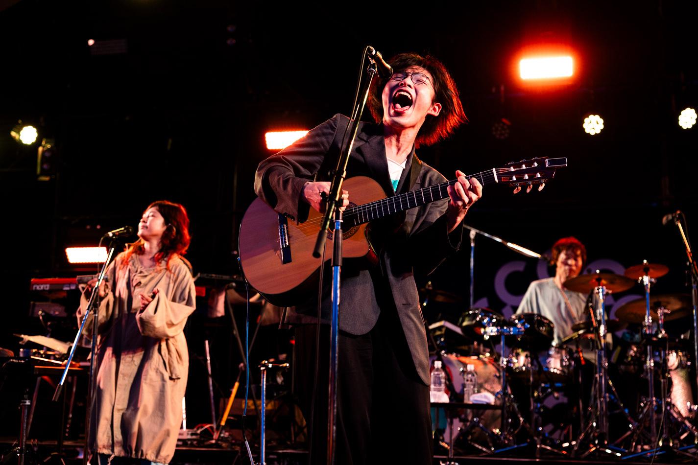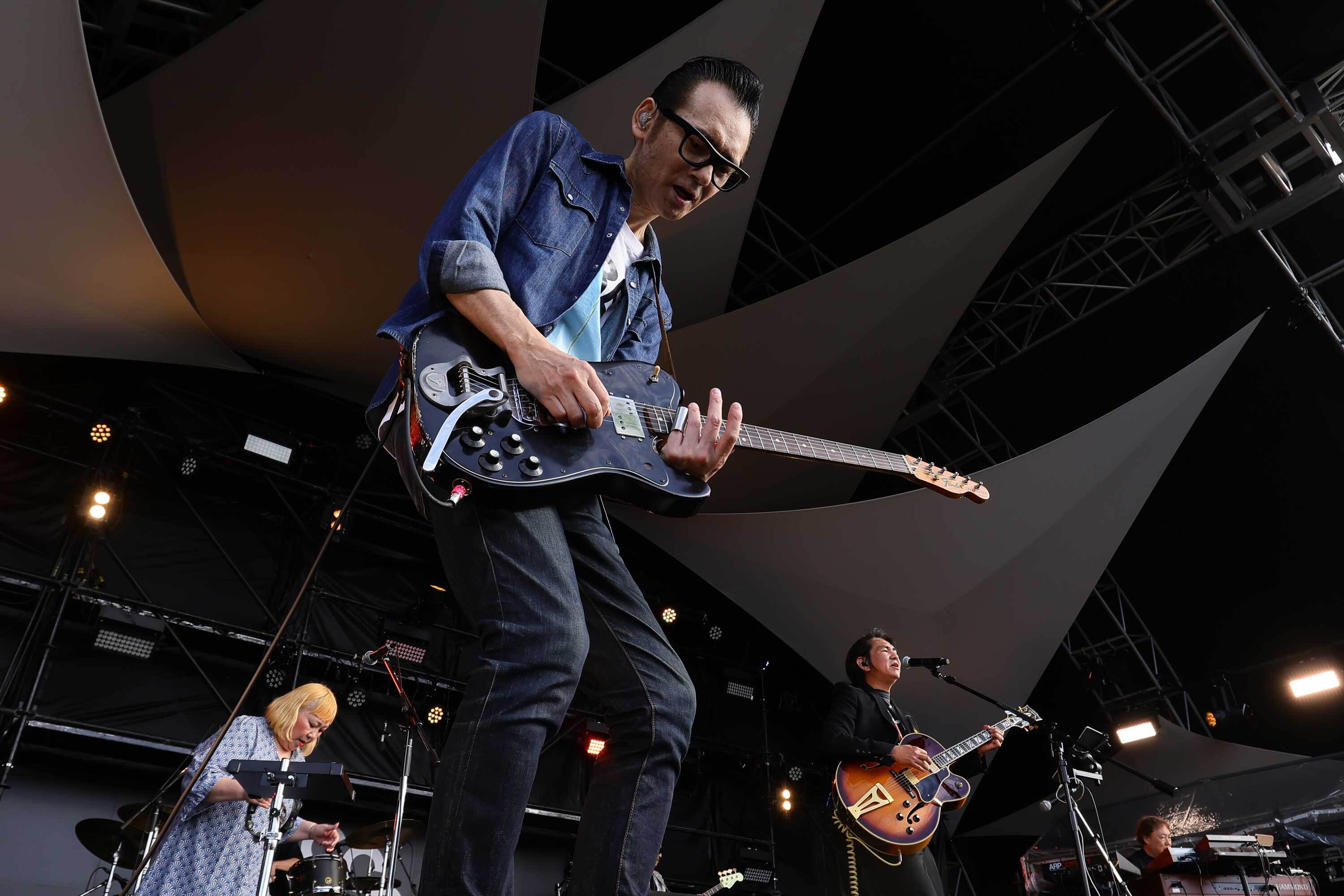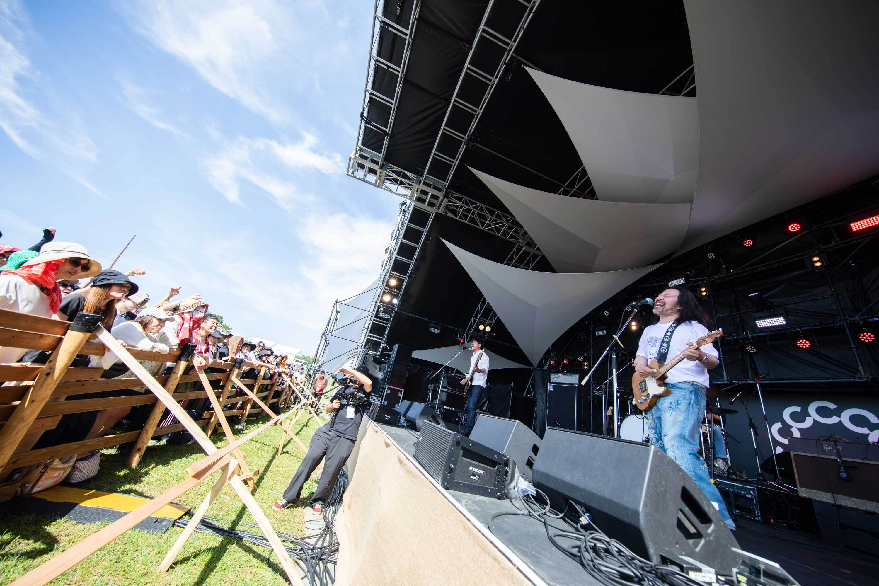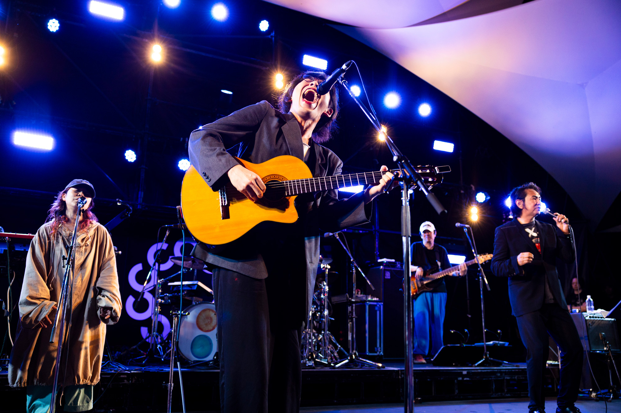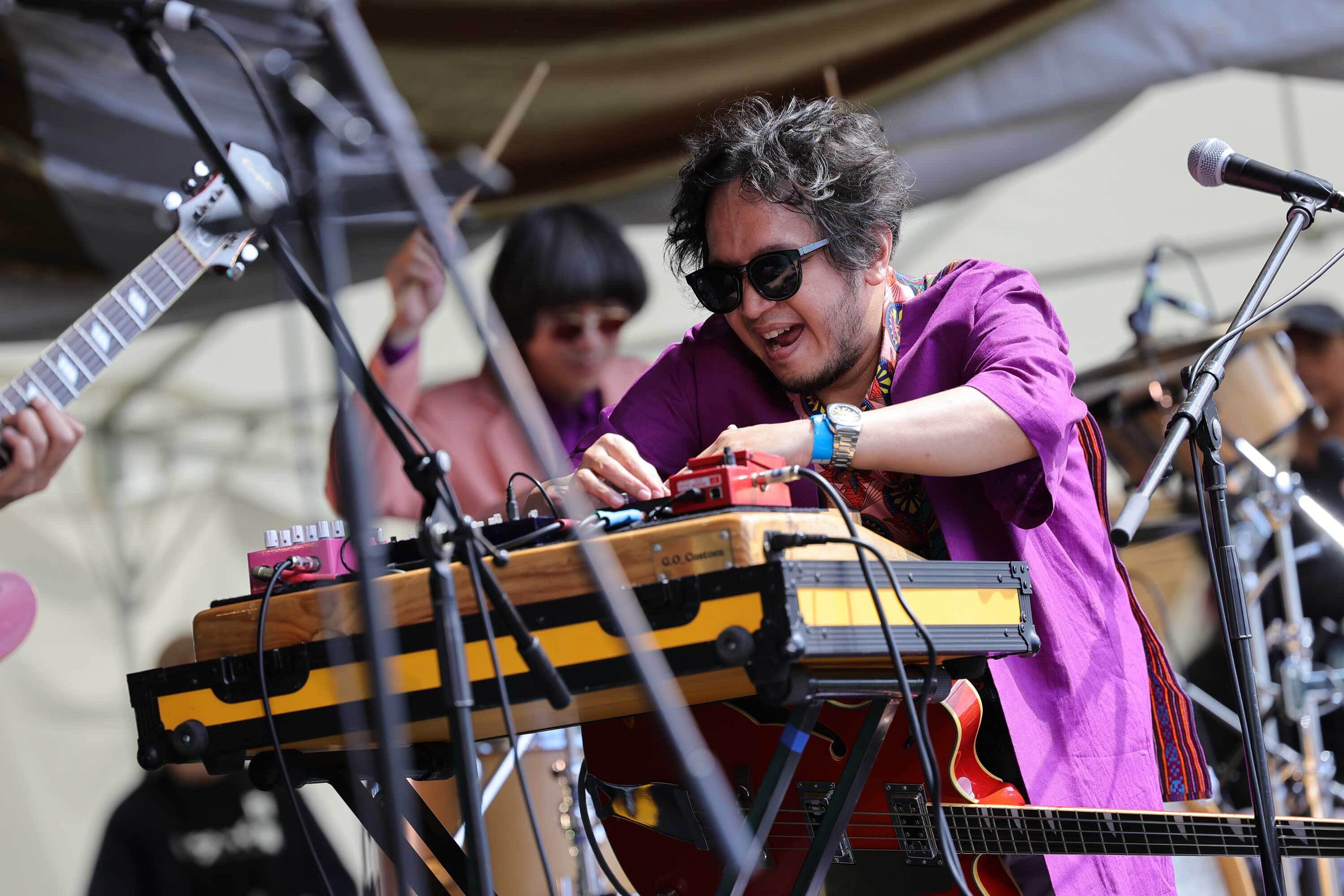 CIRCLE STAGE・3番手はサニーデイ・サービス。3年前にも出演しているが、当時はコロナ禍の影響もあり、マリンメッセ福岡での屋内開催。屋外のサニーデイが一味も二味も違うのは、リハーサルから伝わる。「コーヒーと恋愛」「恋人の部屋」と本編と見間違うくらいに、90年代後半の人気曲が歌われた。1曲目「東京」も96年発表の名盤「東京」収録楽曲だが、私のような当時に青春時代を過ごした若者たちだけでなく、現代の若者たちが口ずさみ体を揺らしている。続く「恋におちたら」「さよなら!街の恋人たち」も同様だが、今や90年代であろうと現代であろうと関係なく、サブスクの影響もあり、同一線上で聴かれる。つまり良い音楽に年代なんて関係ない。