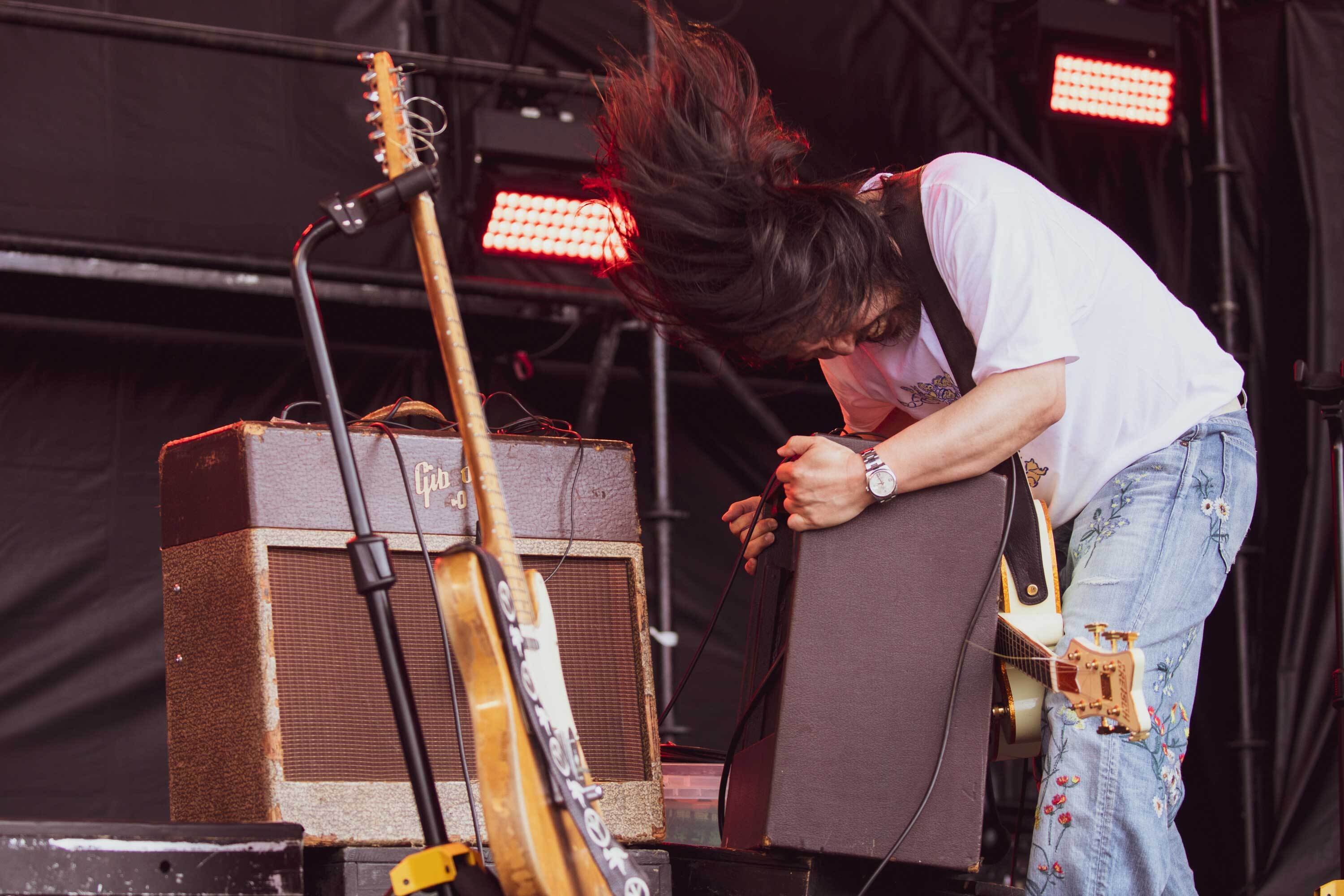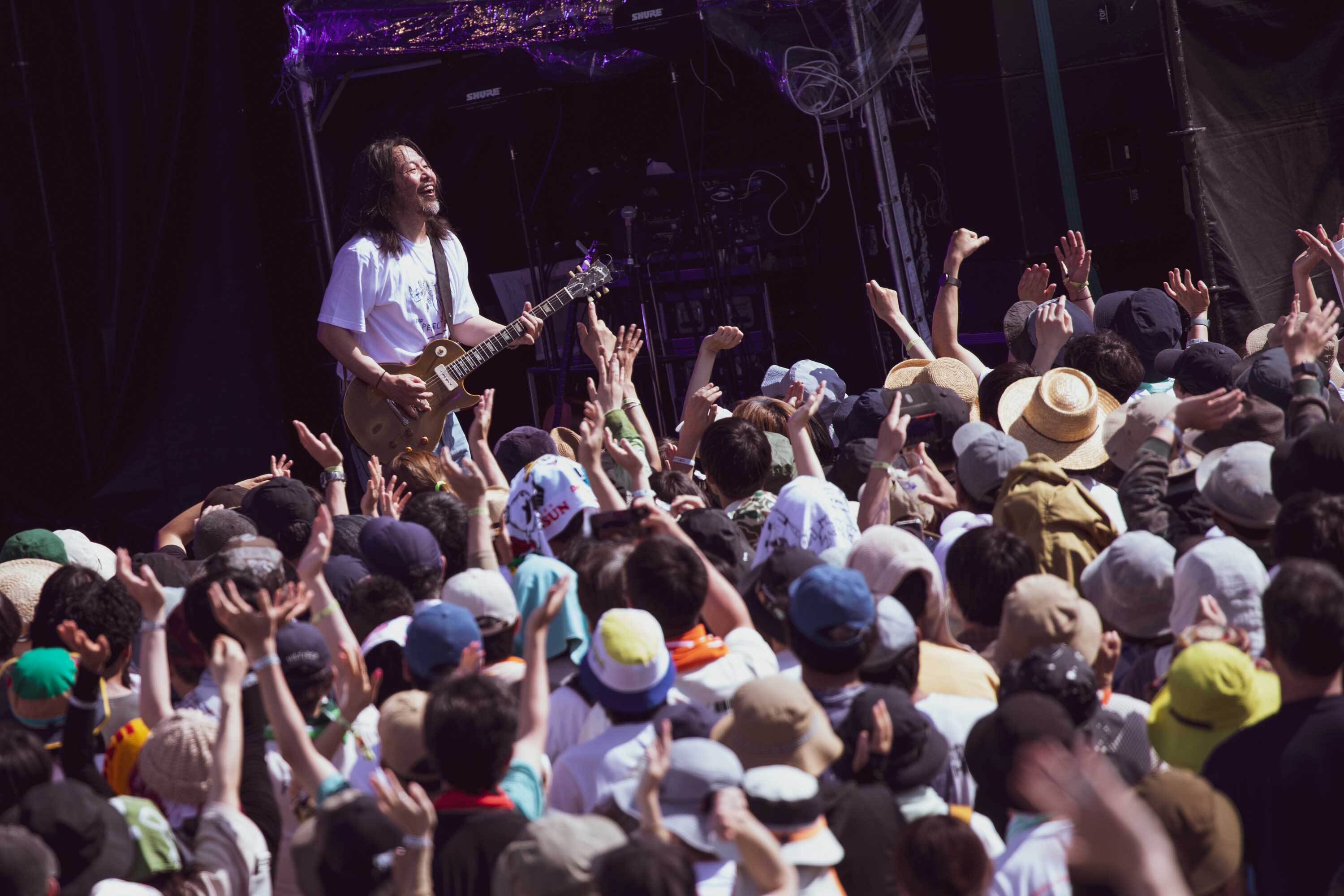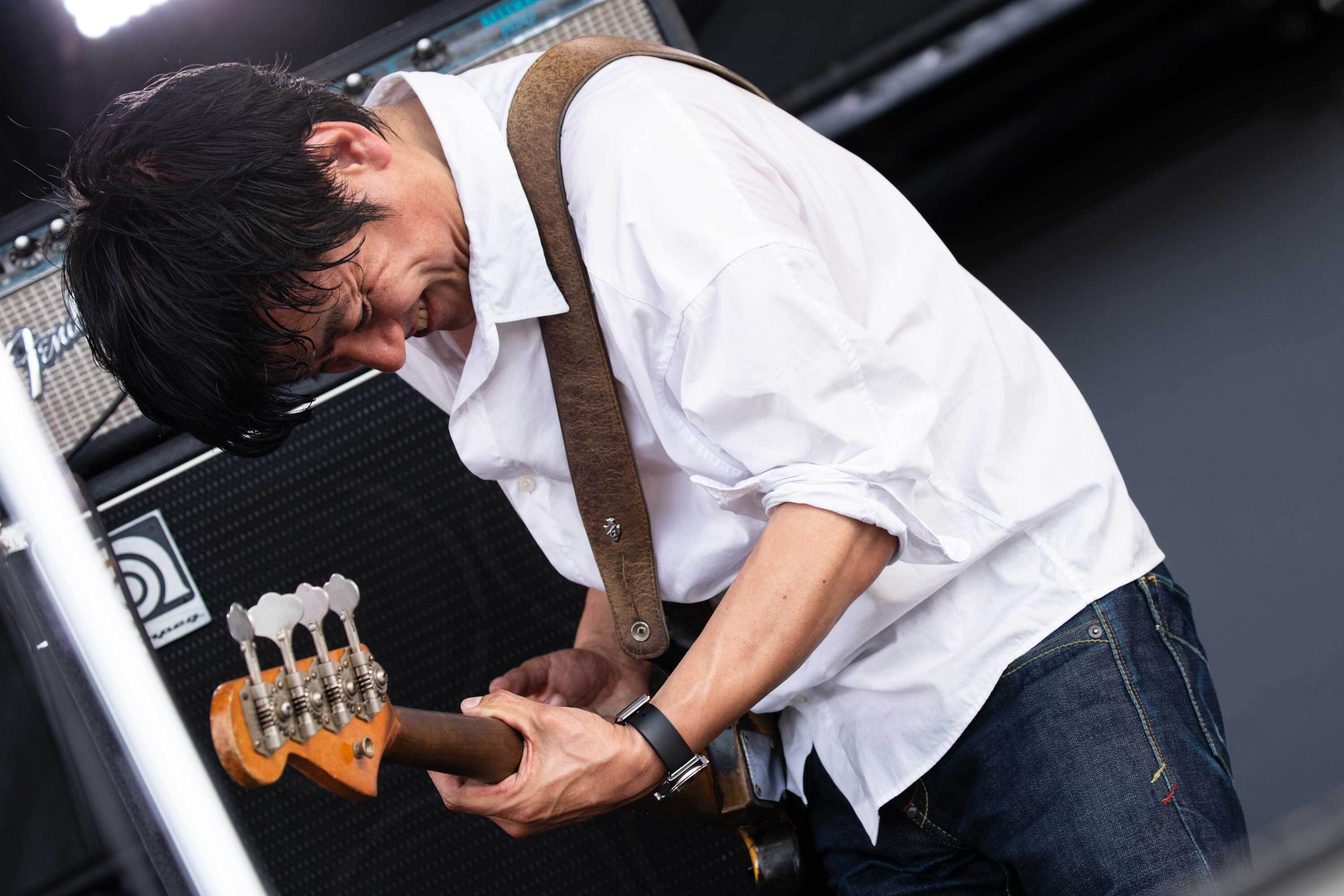 そして、今が最高であることを証明するように、いつ発表された曲であろうと、今日のライブが一番更新された格好良い状態。恐れ入る……。荒々しく重厚であり、どんどん熱量が上がっていく。今から考えたら2日間で一番暑かった時間帯に、最高の熱さをぶちかましてくれた。曽我部恵一が長髪を振り乱してシャウトする。「セツナ」での全身全霊を超えた3人の演奏は凄みしかなく、3人の意識も朦朧としているようにすら見えたし、どう考えても出し尽くしてくれたからこそラストナンバーだと想えたのに、「最後1曲やれる時間あるから、1曲だけやらせて!」と「サマー・ソルジャー」へ。曽我部は「『CIRCLE』、雨が降るかもと言っていたけどヤバいよね。最高の夏にしよう!」と言っていたが、まさしく最高のヤバい夏が一足早く福岡にやって来ていた。