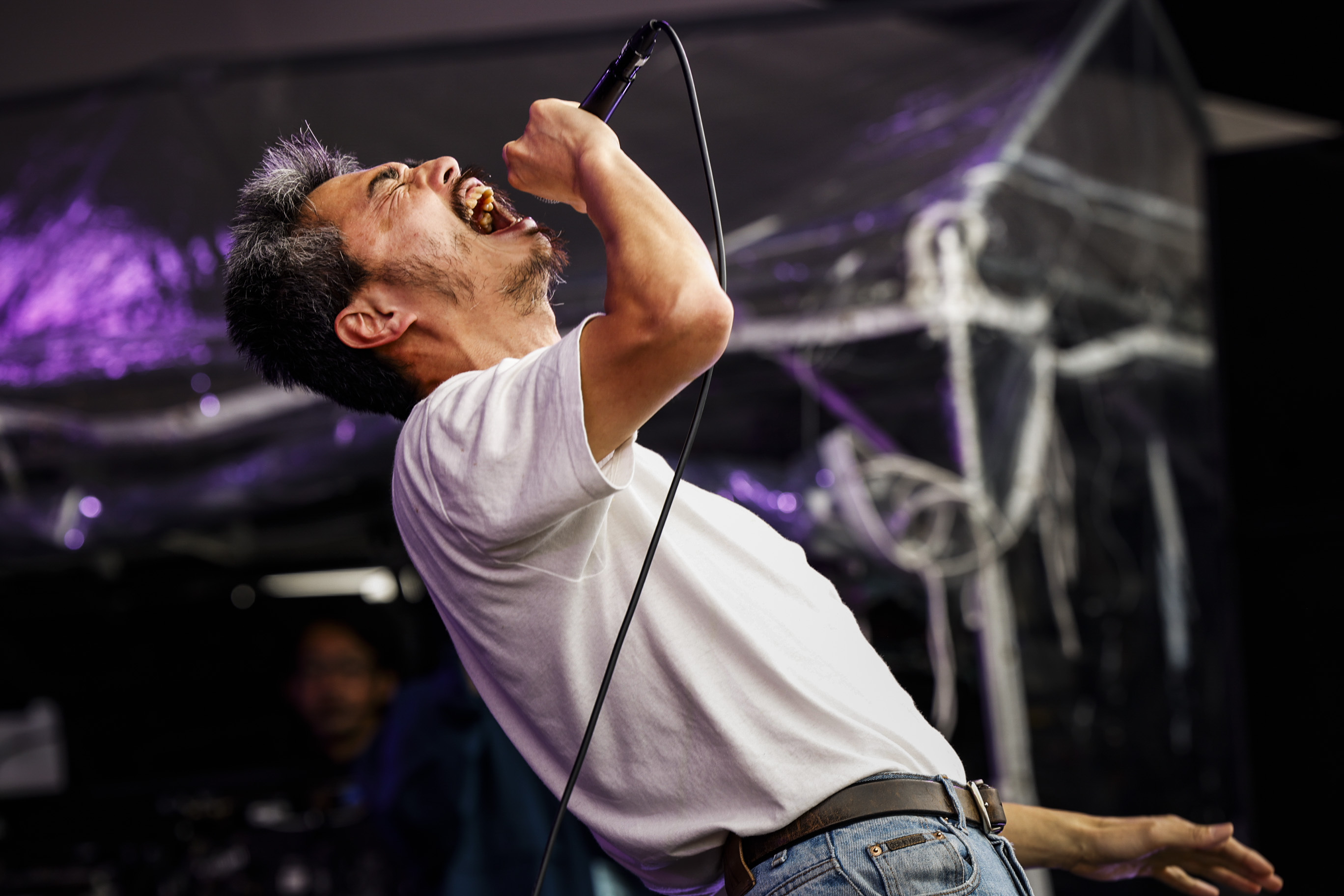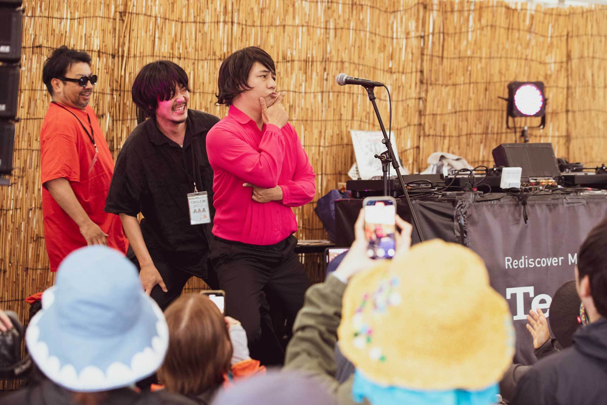 そういう意味では、毎度楽しみなのがDJブースステージであるKAKU-UCHI Annex。毎年名前を連ねる事務所レーベル「カクバリズム」代表の角張渉など名物DJ勢揃い。福岡を拠点にレーベルやバンドなど多岐に渡って活動するボギーが何に扮して熱唱するかも毎度楽しみであり、今年はお馴染みの岡村靖幸だけでなく、手作りの衣装でデビッドボウイとして現れたのには度肝を抜かれた人も多いだろう。