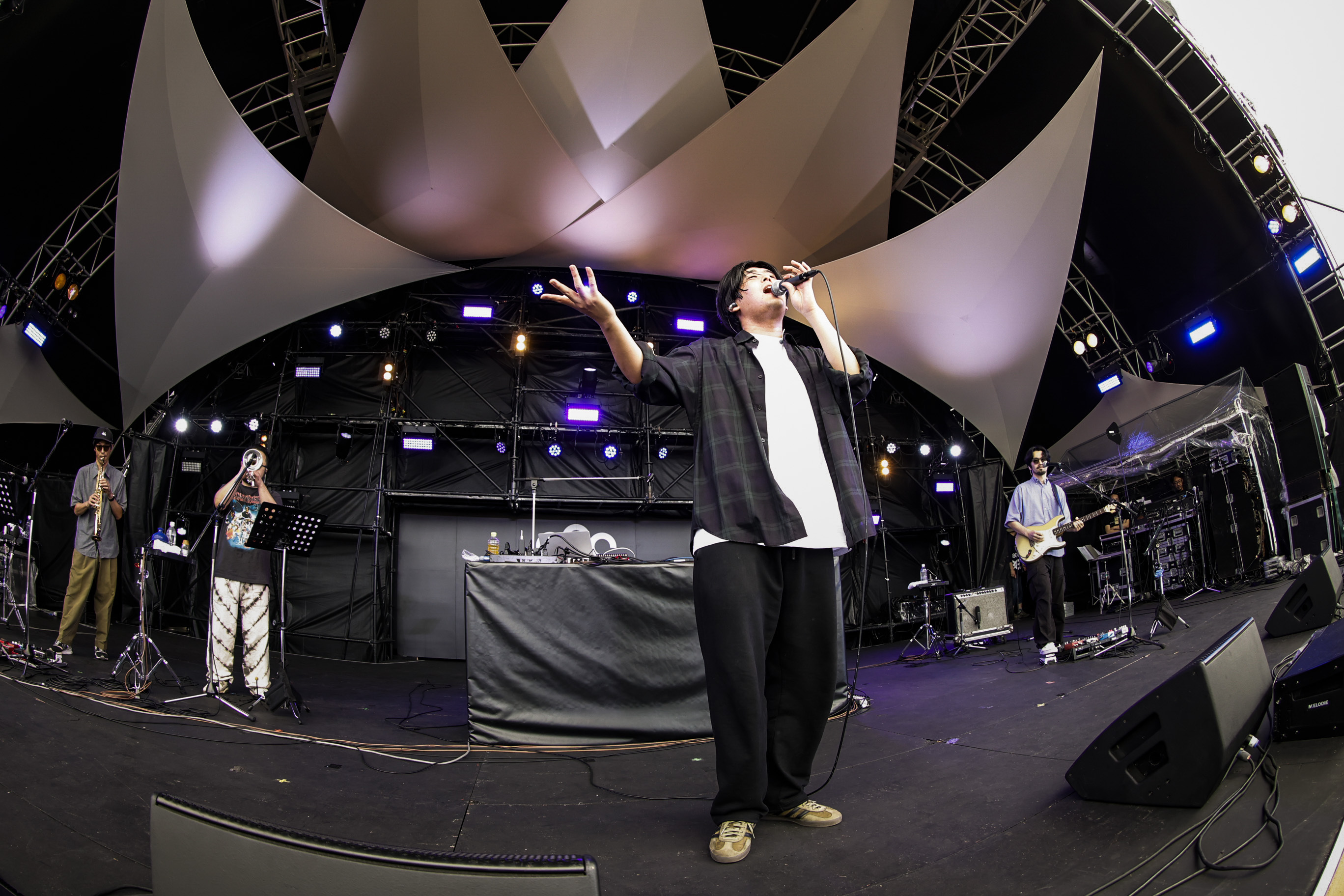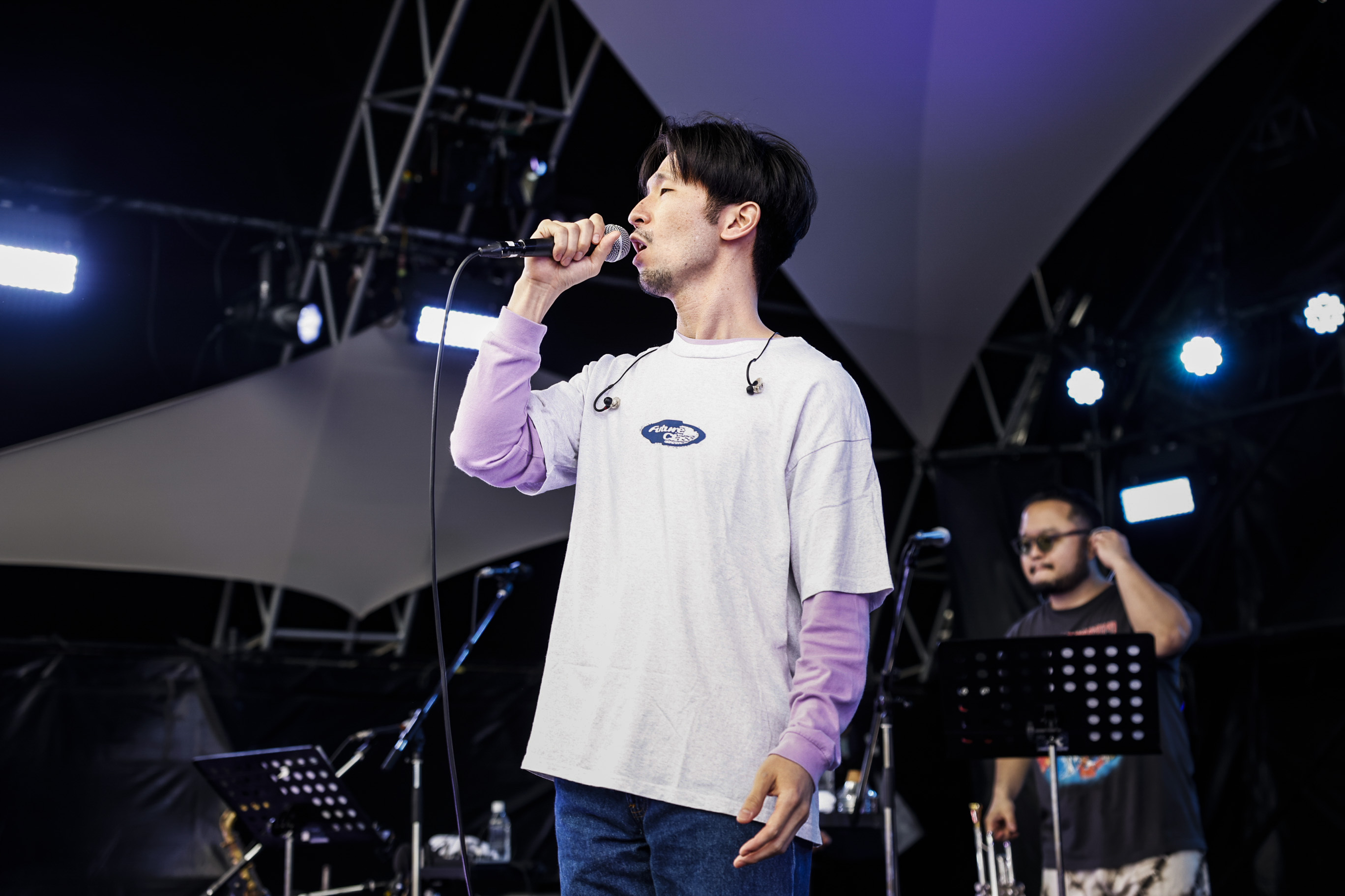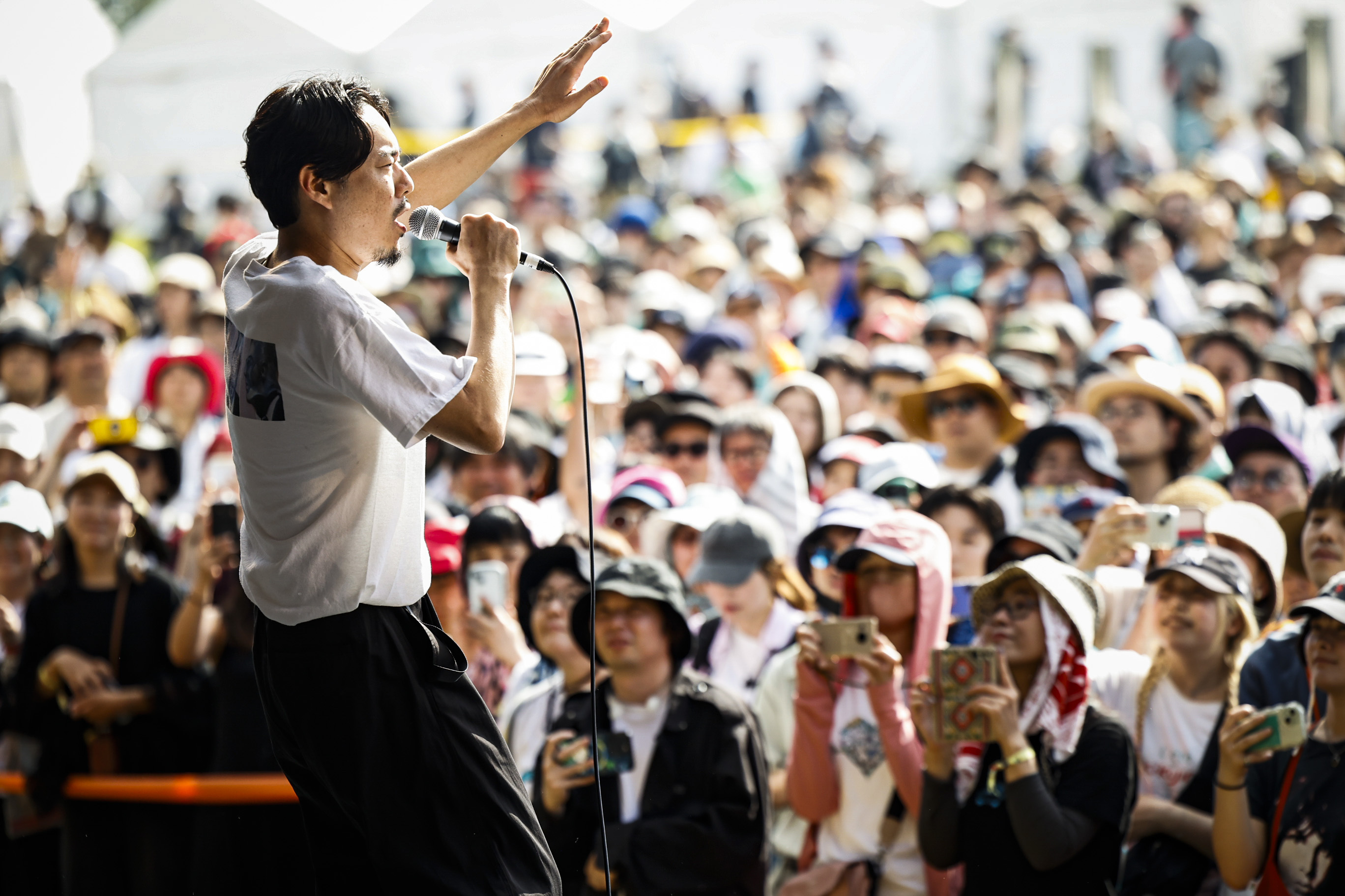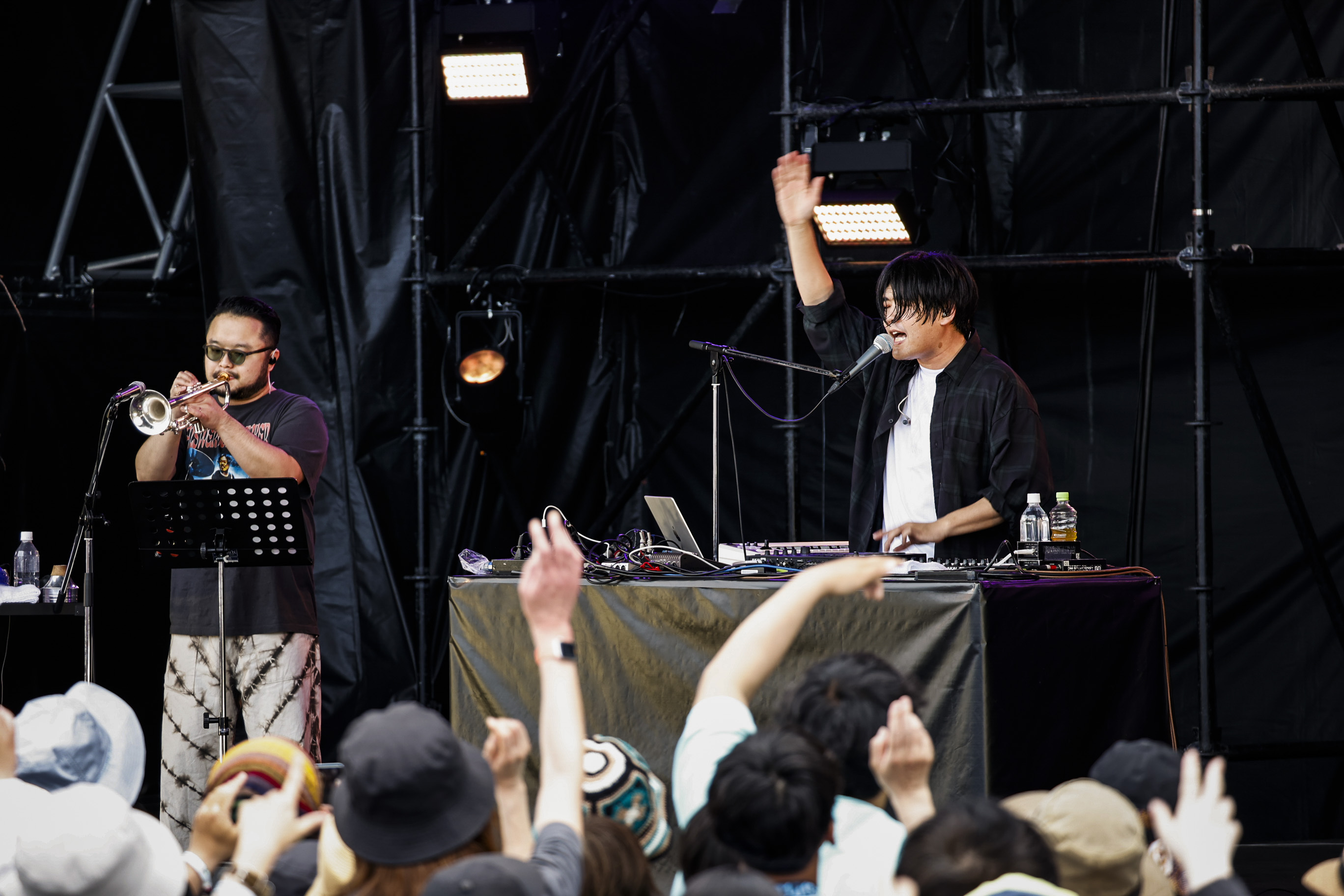 STUTSは自らラップをしたり、MPCのパッドを叩きビートを作り出したりしながら、自らがプロデューサーであることも説明するので、初見の人も入りやすいだろう。レポートとしては順番が前後してしまうが、鎮座DOPENESSが自身の出番前にゲストで登場。ひとこえ発しただけで空気を変えてしまう威力は特筆すべきものがあった。STUTSは今年4月に35歳で亡くなったJJJとの楽曲「Changes」も披露。その人は亡くなっても、その音楽を鳴らし続けることで、その人を新たに知ることもできるということを実感した。色々なことがあっても前を向いて音楽を楽しんでいきましょうというSTUTSのメッセージは、確かに我々の元へと届いた。