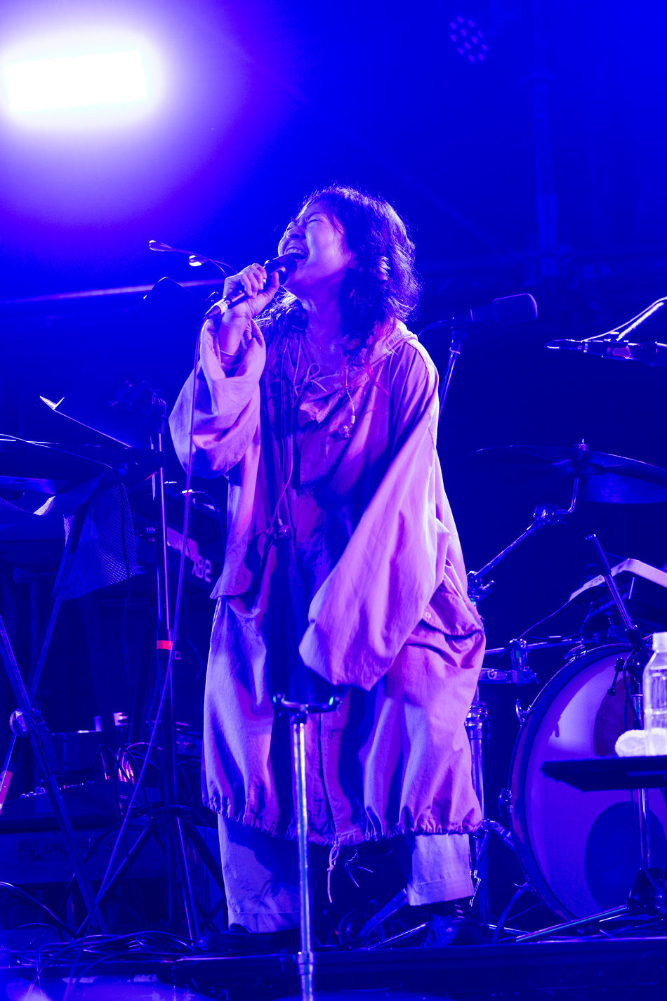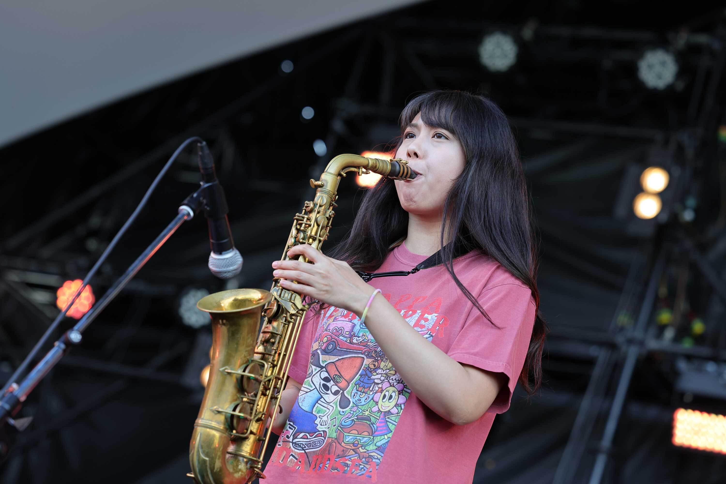 石若いわく「みんなで集まってご飯ができるのも珍しいんですけど、それが九州でできて、めっちゃ幸せです」。出る側も観る側も九州・福岡の地で開催されることへの特別感や喜びを持っているのが素敵である。Juaやermhoiといったゲストが参加して、声がプラスアルファされることで、より立体感が増す。この日、Taikimenが28歳の誕生日を迎えたので、急遽「HAPPY BIRTHDAY!」と演奏されたこともあり、初っ端から誠にハッピーな空間となった。