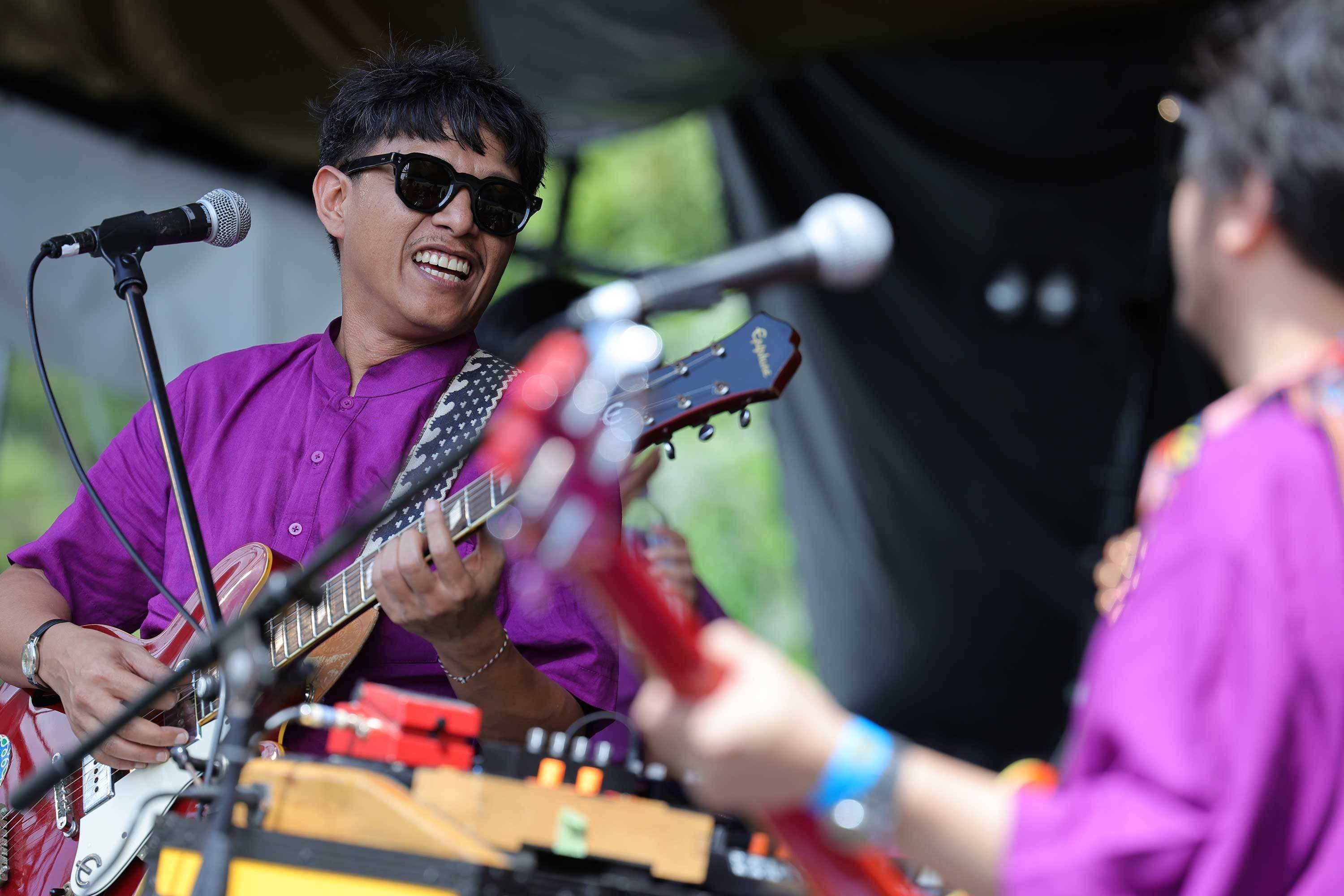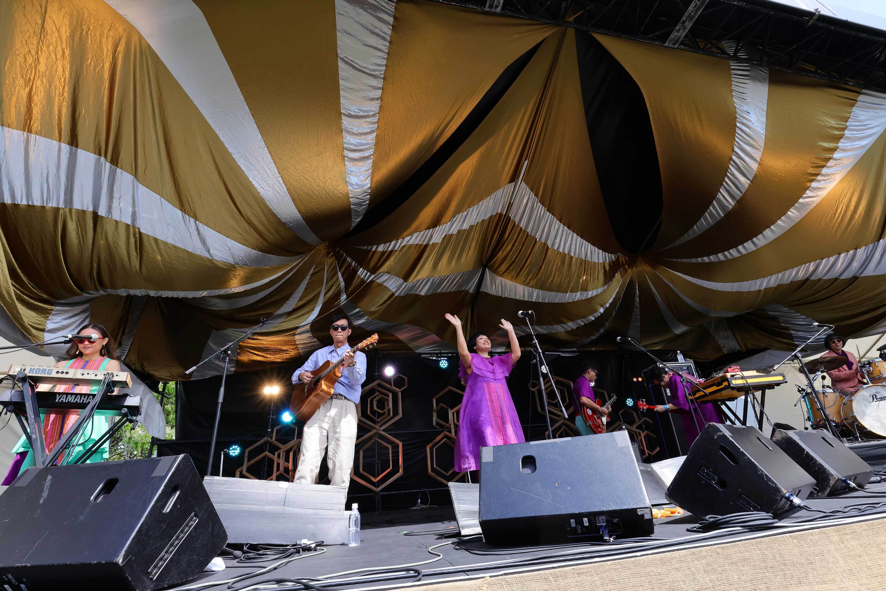 初福岡という点では、国内だけでなく国外の出演者に出逢えるのも『CIRCLE』の良きところ。一昨年のMikan Hayashi(ゲシュタルト乙女)、落日飛車、去年のYONLAPAに続き、今年はインドネシア・ジャカルタ発のインディーポップバンドであるWhite Shoes & The Couples CompanyがKOAGARI STAGEに2番手で登場。色鮮やかな衣装に身を包んでいたが、音も色鮮やか。私もだが、初めて聴く人が多いはずなのに自然に馴染めて踊れる。何かを目当てにフェスに来るのも楽しいが、偶然そこで出逢えるのもフェスの醍醐味。歌やMCでも片言の日本語で観客に接してくれる姿は、とても平和な光景であった。