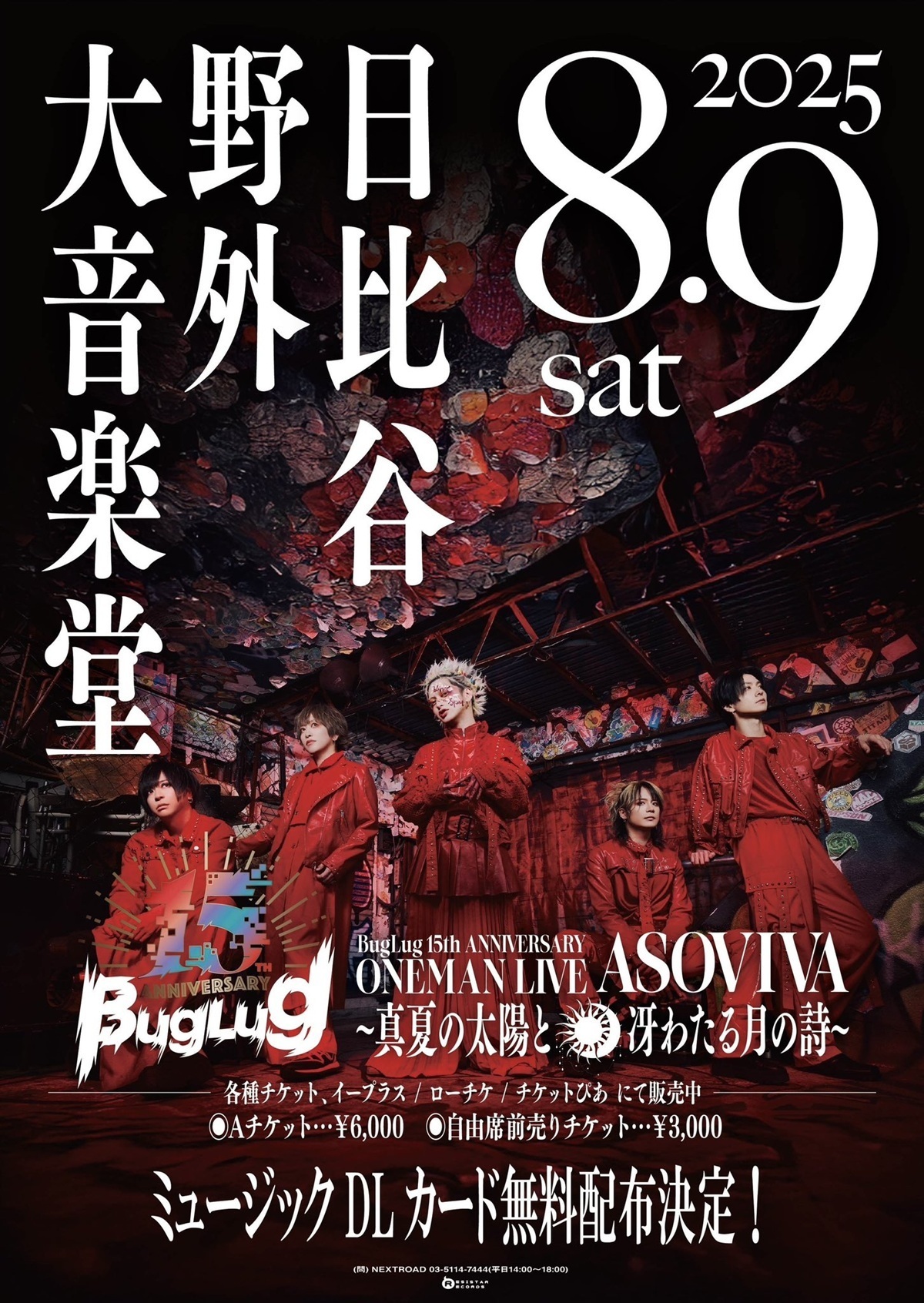 さらに、バンドの集大成とも言える15周年記念ワンマンライブ『ASOVIVA~真夏の太陽と冴わたる月の詩~』が、8月9日(土)に日比谷野外大音楽堂で開催される。本公演は、コロナ禍により中止を余儀なくされた10周年ライブの“リベンジ”も込めた内容となっており、会場限定の無料配布音源も決定している。