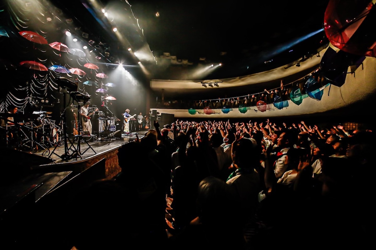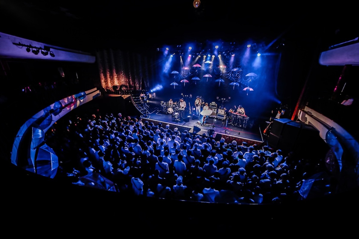 「Heaven」を演奏し終わると、一旦ステージをはけるRei。そこで男性メンバー3人が演奏し始めたのは、シティポップ的なグッドメロディのあの曲。そう、Ginger Rootの代表曲と言っていい「Loretta」だ。因みにこの日の開演前、Rei自身のセレクトによるBGMでは大貫妙子、鈴木茂、KIRINJI、竹内まりや、EPOといった今ではシティポップの文脈で語られるアーティストたちの曲が多く流れており、そのなかにGinger Rootの曲もいくつか混ざっていたので、勘のいい人はその時点でゲストが誰だか気づいたかもしれないが……。「Loretta」のバンド演奏とそこに乗るアナウンスに続き、下手側上方のサブステージに登場したのは、そう、Ginger Rootだった。そのときの観客たちの驚きと喜びの声といったら!