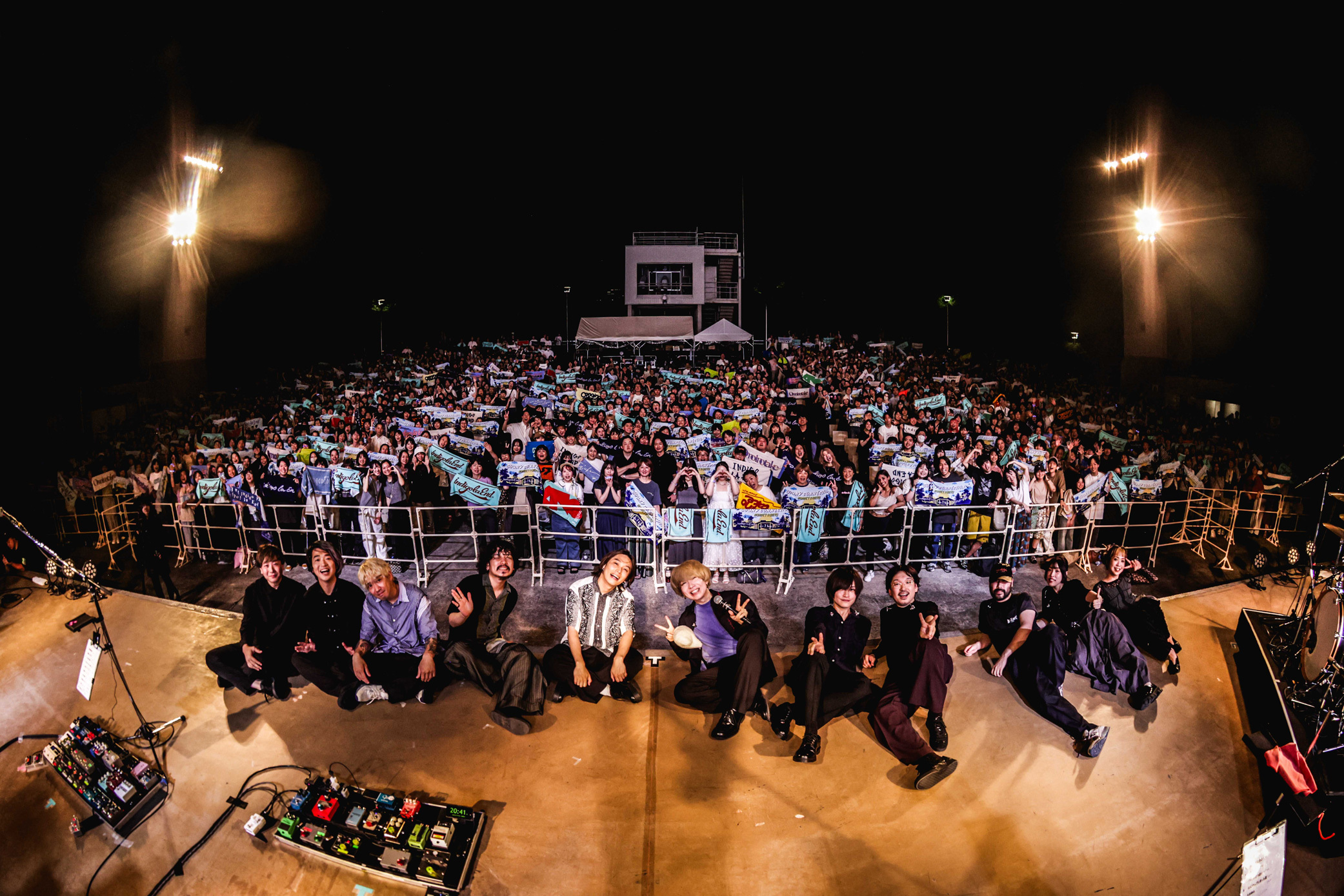 「僕らは結成15年、Omoinotakeも13年で長いし、年の近いバンドとツーマンができて良かった。Omoinotakeのファンの方は「夏夜のマジック」まではさぞ苦しかったでしょうけど(笑)、今日みたいな機会があるとうれしいし、このまま仲良くなって、また一緒にやりたいなと思っています。そのときはぜひ見に来てください! 僕らはツーマンライブの最後はこの曲と決めていて、一番デカい音を出して長々と演奏しますので、帰るか耳をふさいでもらえれば(笑)」