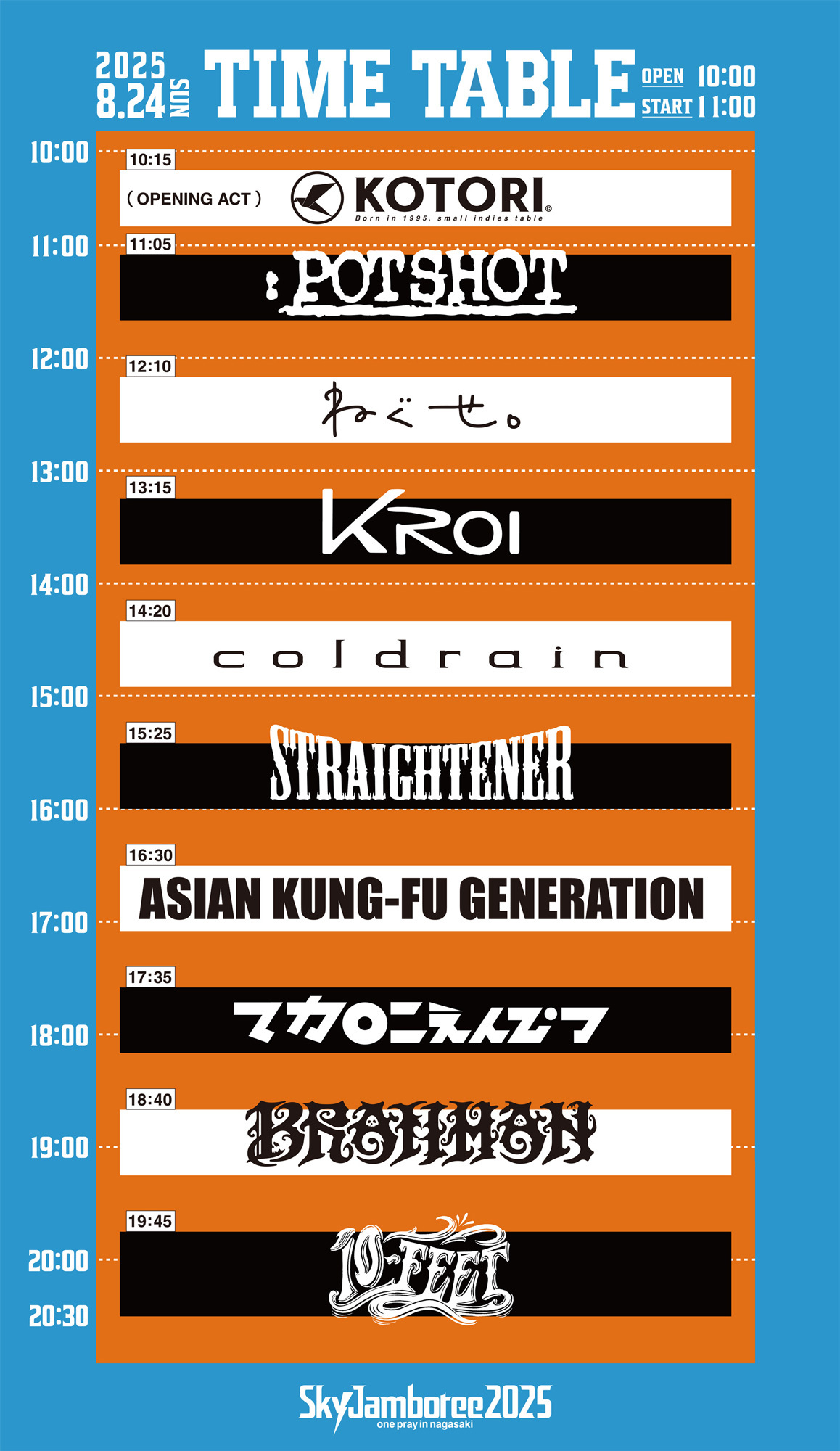 2025年8月24日(日)に、長崎市の稲佐山公園野外ステージにて開催される『Sky Jamboree 2025 ~one pray in nagasaki~』のタイムテーブルが発表された。