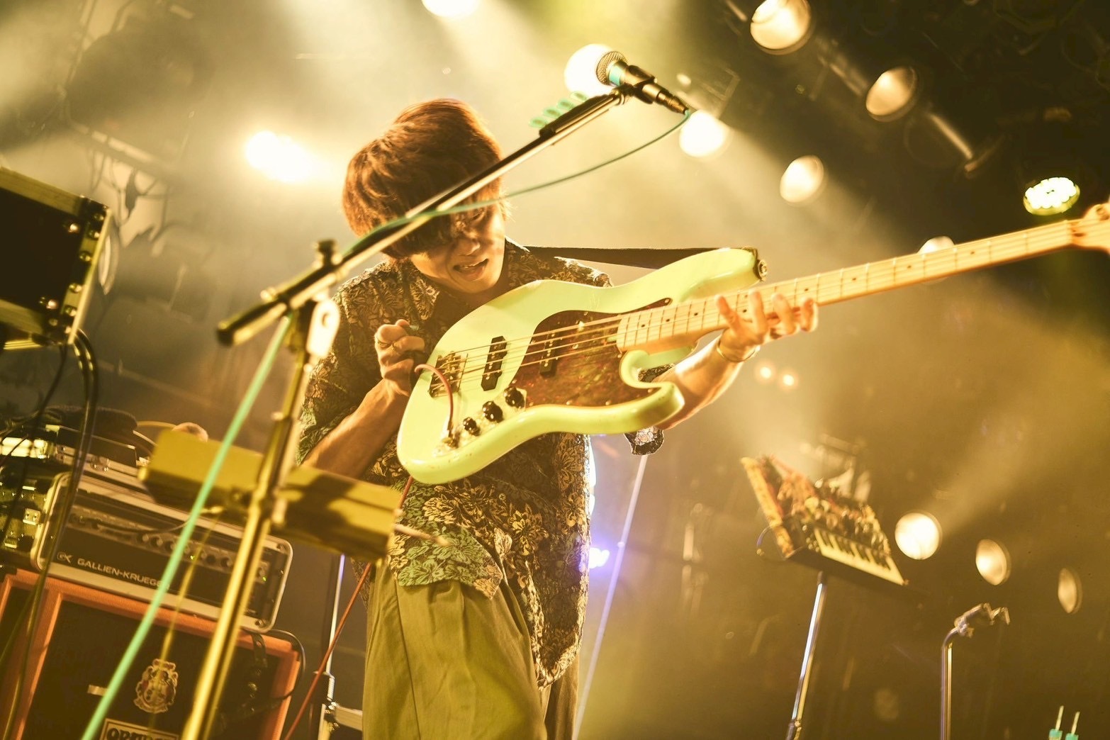 動物とコラボすることをテーマに人間を含む45種類の動物の声をサンプリングした、この曲をライブでどう再現するのか興味津々だった観客は少なくなかったはず。同期に加え、藤森がサンプリングした動物の声をキーボードで鳴らしながら、森野が奏でるグルービーなリフを軸にプログレともマスロックとも言える演奏を繰り広げ、最後はアンセムとして着地させるんだから聴きごたえありすぎだ。改めてバンドの演奏力をアピールしたと思うが、実は中盤のハイライトはもう1曲。