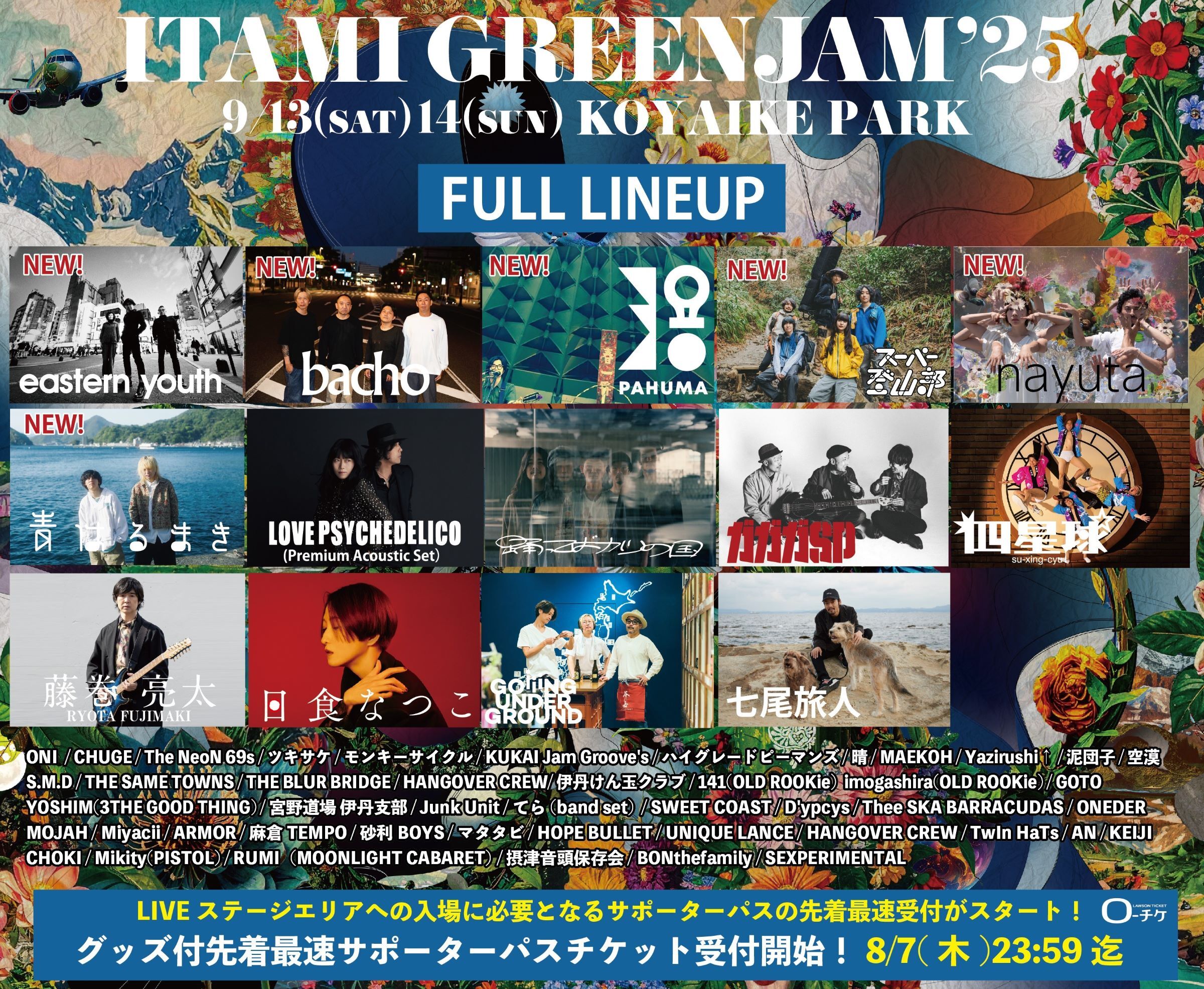 9月13日(土)、14日(日)の2日間、兵庫県伊丹市昆陽池公園にて開催される『ITAMI GREENJAM’25』の最終出演者が発表された。