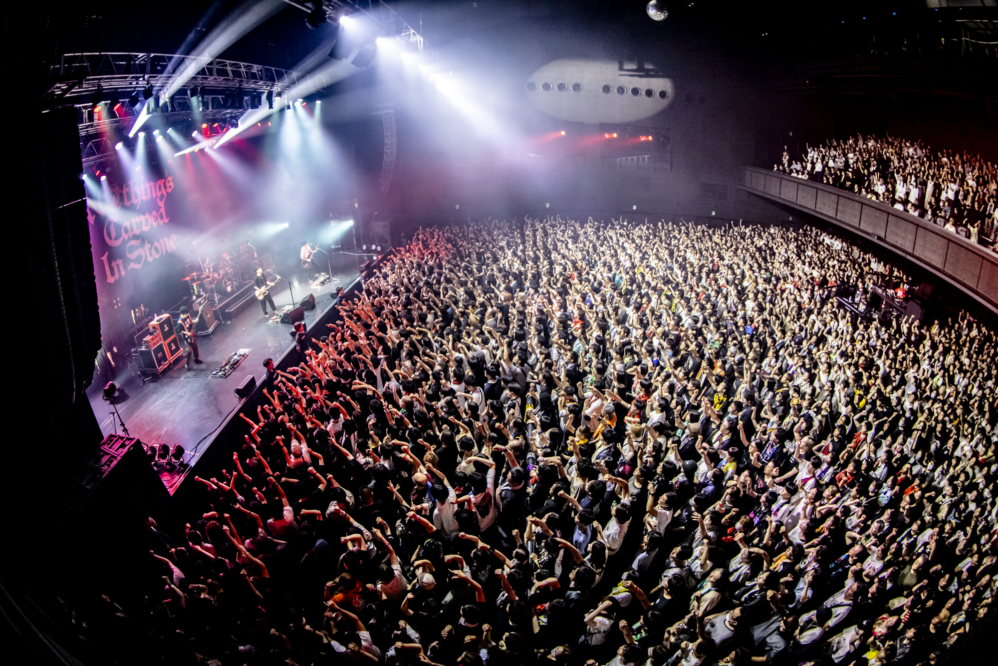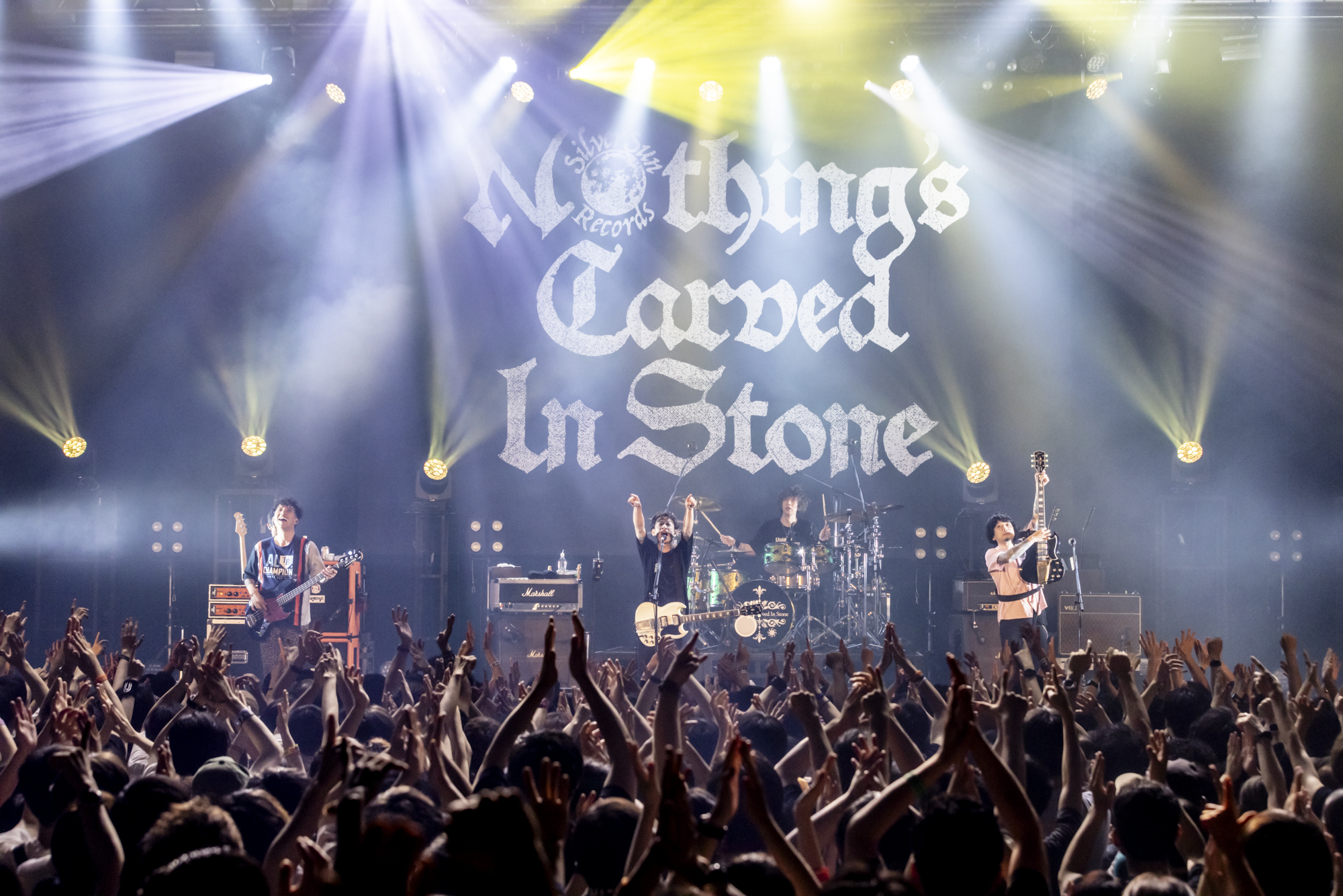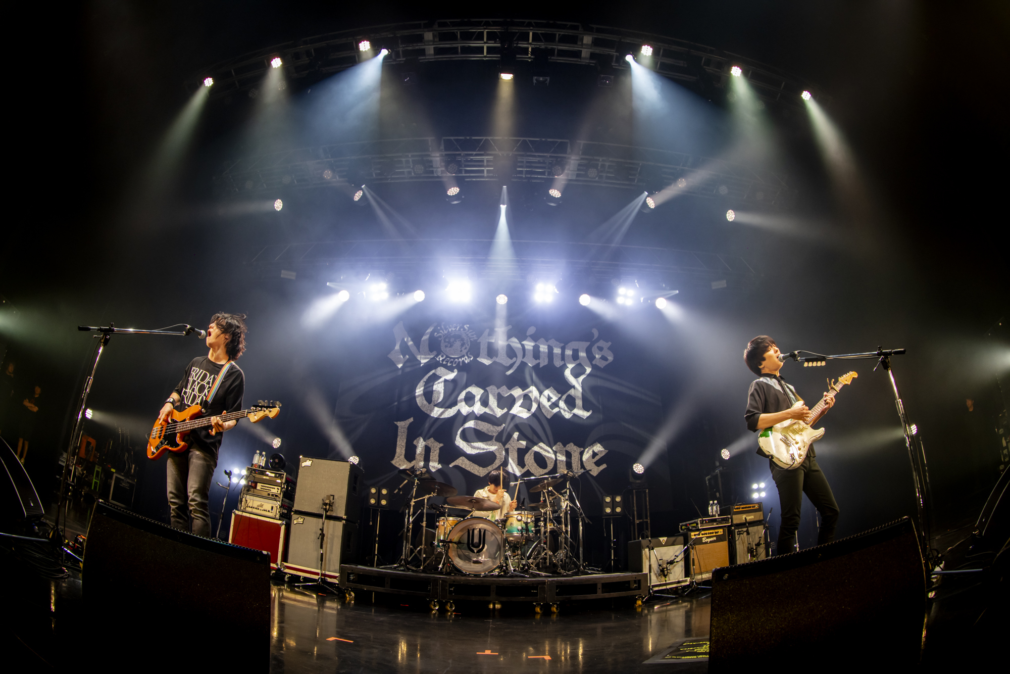いずれもロックシーン屈指の技巧派であり、歌と演奏で全て語り切るストロングスタイルのライブでスペクタクルな瞬間を生み出していくバンドだ。手数の多さや複雑な展開、かといってポップスとしての効力を損なわない点など、共通する要素はかなりあるけれど、似ているのか?と問われれば全くそんなことはない。というか、周りを見渡しても誰にも似ていない個性的で孤高の存在である。Nothing’s Carved In Stoneがおよそ2年ぶりに開催した対バンツアー『Hand In Hand Tour』の最終公演に迎えたのは、UNISON SQUARE GARDEN。2025年7月19日(土)の19時ちょうど、興奮必至の夜が始まった。