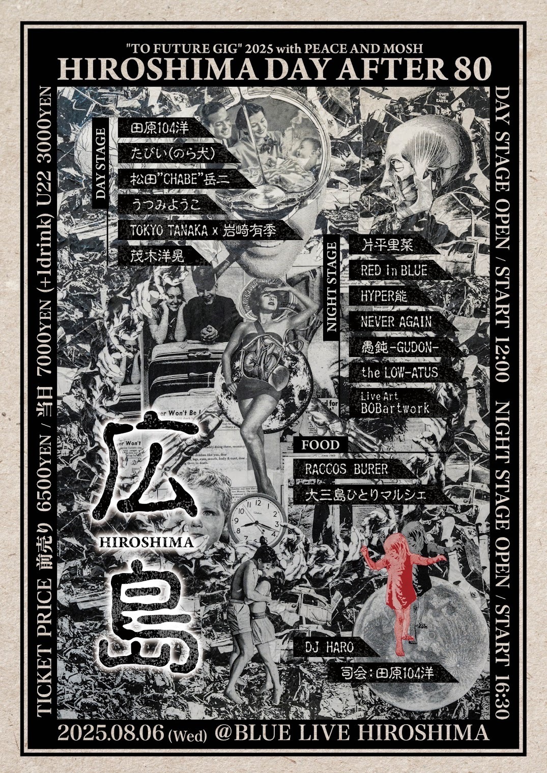 8月6日(水)に広島・BLUE LIVE HIROSHIMAにて開催される、平和を祈る音楽イベント『TO FUTURE GIG 2025 with PEACE AND MOSH「HIROSHIMA DAY AFTER 80」』のタイムテーブルが発表された。