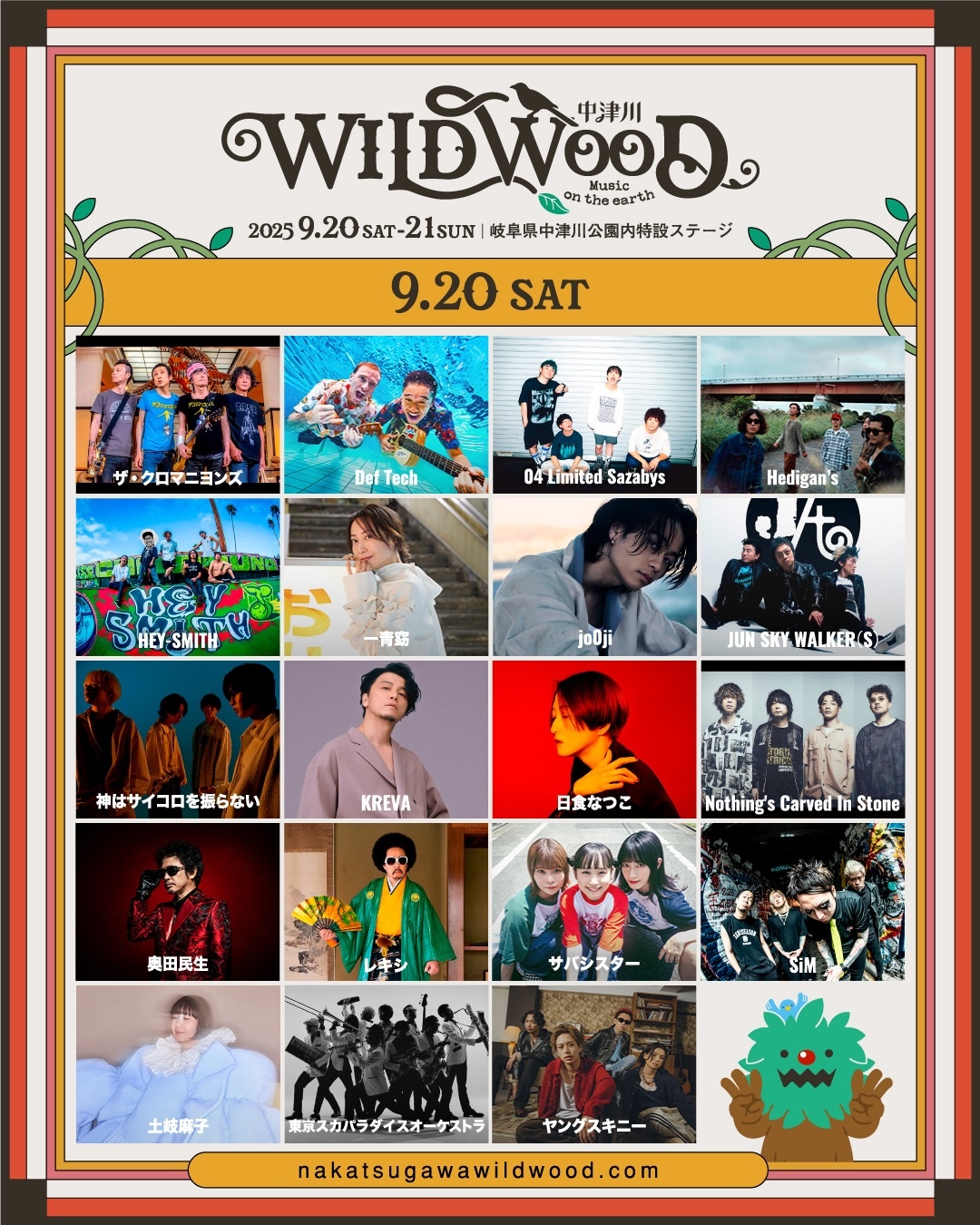 岐阜県中津川市で9月20日(土)・21日(日)の2日間にわたって開催される新たなロックフェス『中津川 WILD WOOD 2025』のタイムテーブルが発表された。